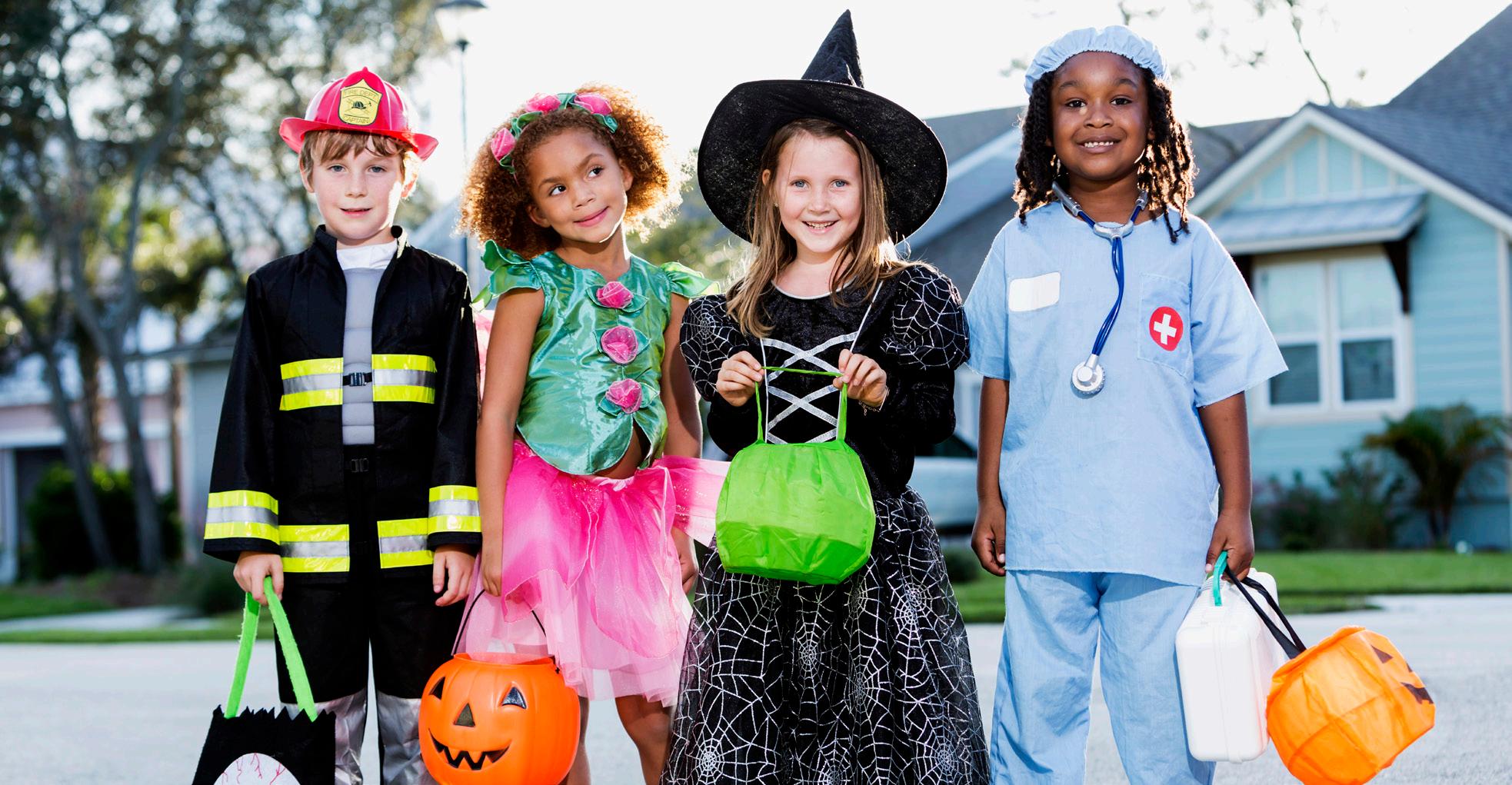 • Improve visibility. It’s important to be seen while trick-or-treating, and that can be achieved by making sure costumes and trick-or-treat bags feature reflective tape. Trick-or-treaters also can carry flashlights or glow sticks to improve visibility, and stick to areas with