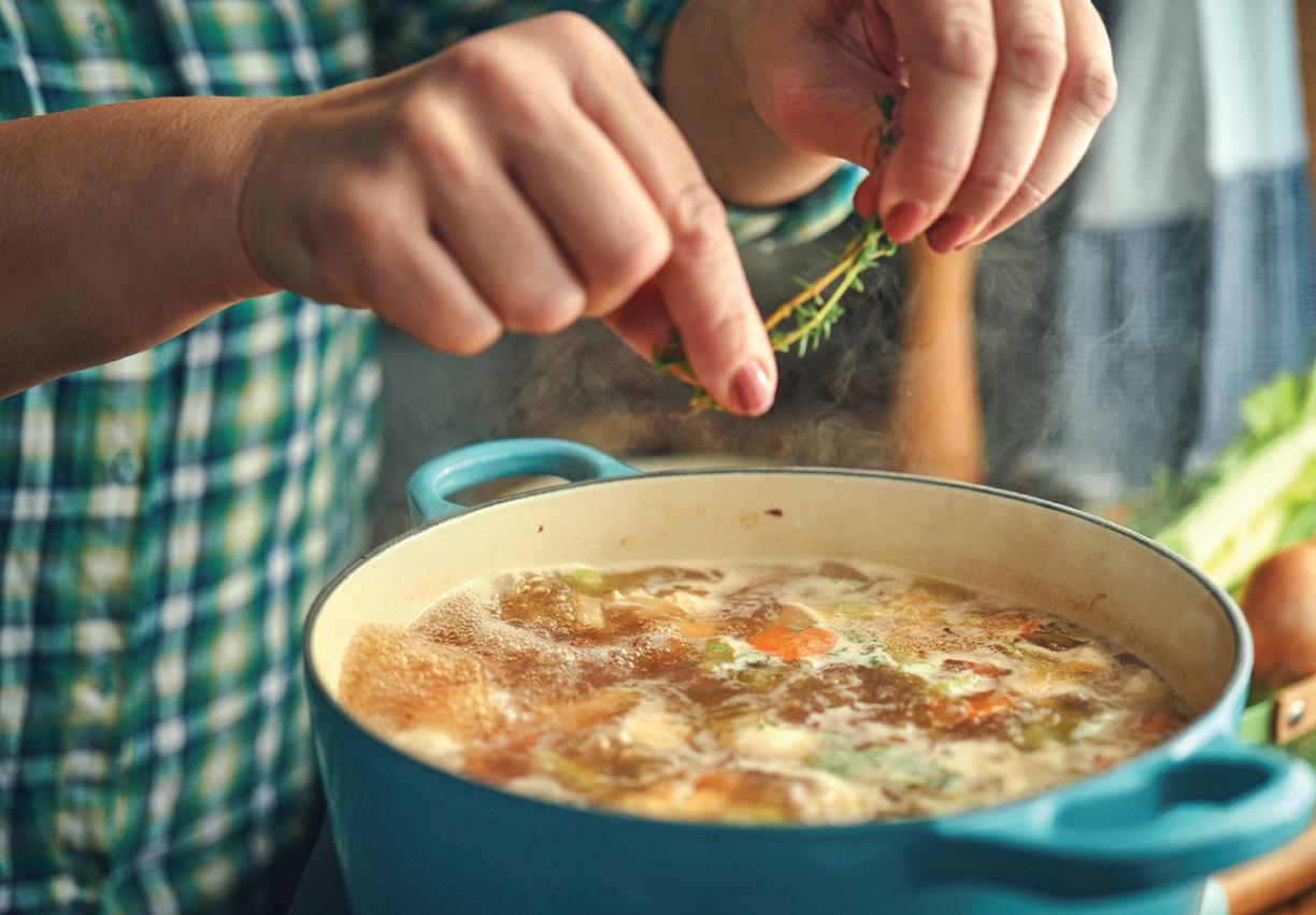 • Keep ingredients “whole” in the soup. Lean on whole grains, fibrous vegetables, fresh herbs, and lean meats to build a well-rounded soup that’s bursting with nutrition.