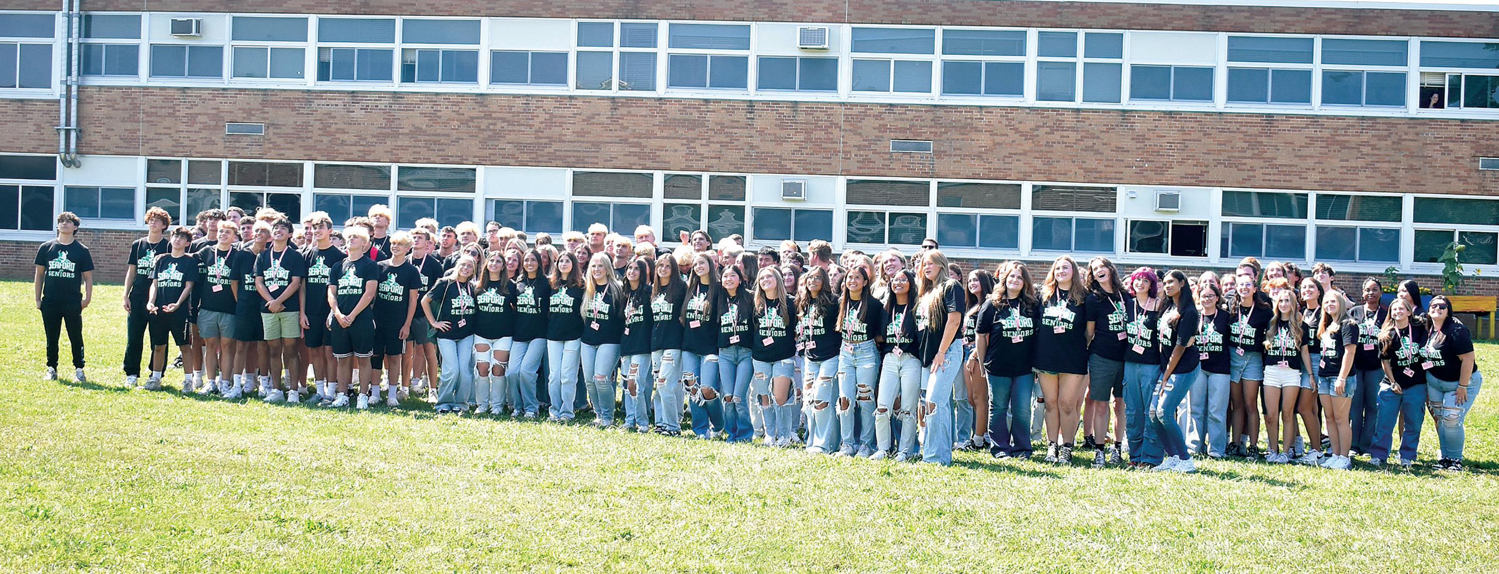 Seaford High School’s Class of 2025 gathered for the traditional first-day-of-school photo in their senior shirts on Sept. 3. Photo courtesy of the Seaford School District