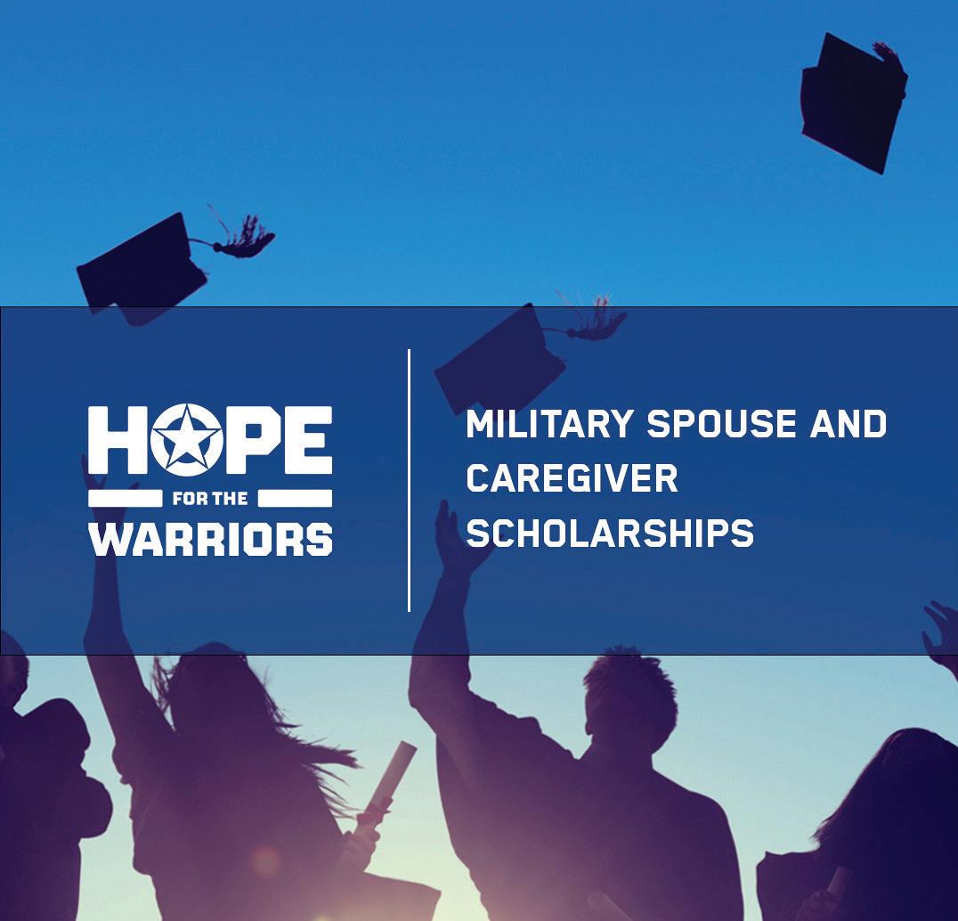 Now through September 30, applications are being accepted for the spring 2026 semester for the Hope For The Warriors Military Spouse and Caregiver Scholarship Program. Since 2006, Hope For The Warriors has awarded Military Spouse and Caregiver Scholarships twice a year. The nationwide program recognizes and rewards post-9/11 spouses and caregivers for their strength, fidelity and resolve despite adversity as they assume critical roles
