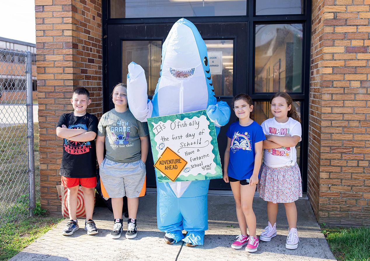 Albany Avenue Elementary School staff enthusiastically greeted students on their first day. Photo courtesy of the Lindenhurst Union Free School District