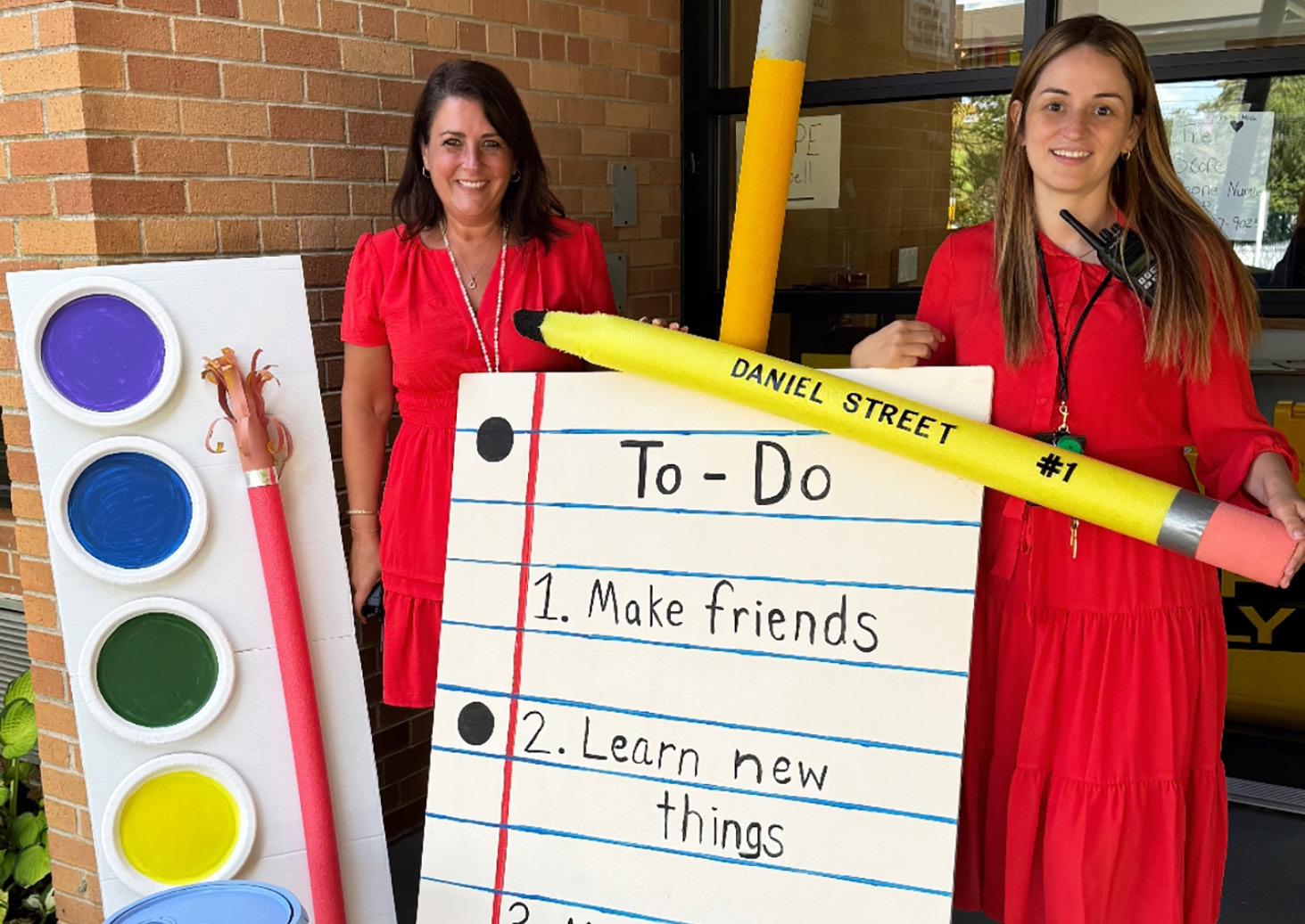 Staff at Daniel Street Elementary School welcomed returning students. Photo courtesy of the Lindenhurst Union Free School District