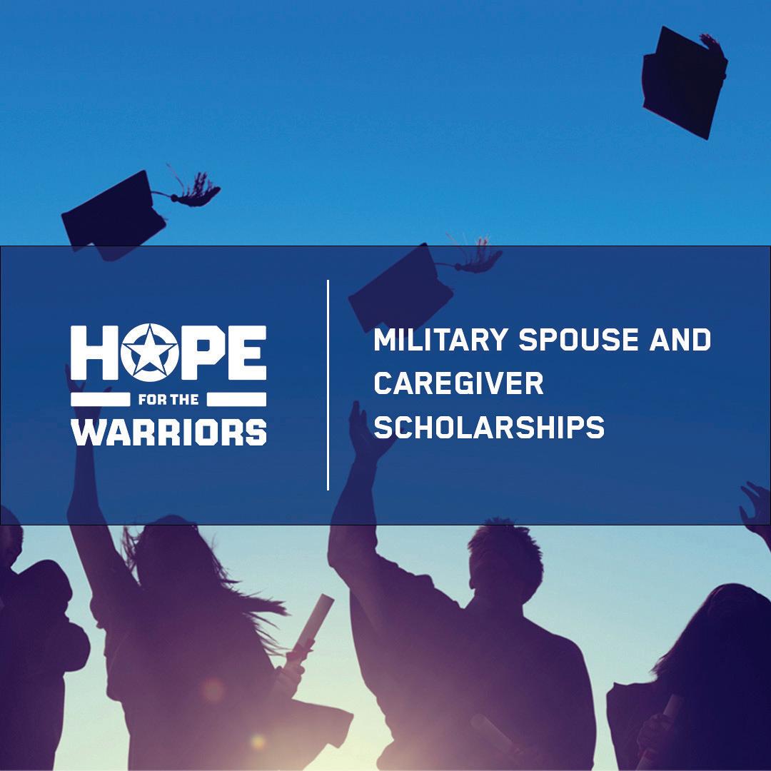 Now through September 30, applications are being accepted for the spring 2026 semester for the Hope For The Warriors Military Spouse and Caregiver Scholarship Program. Since 2006, Hope For The Warriors has awarded Military Spouse and Caregiver Scholarships twice a year. The nationwide program recognizes and rewards post-9/11 spouses and caregivers for their strength, fidelity and resolve despite adversity as they assume critical roles in the financial wellbeing of their families.