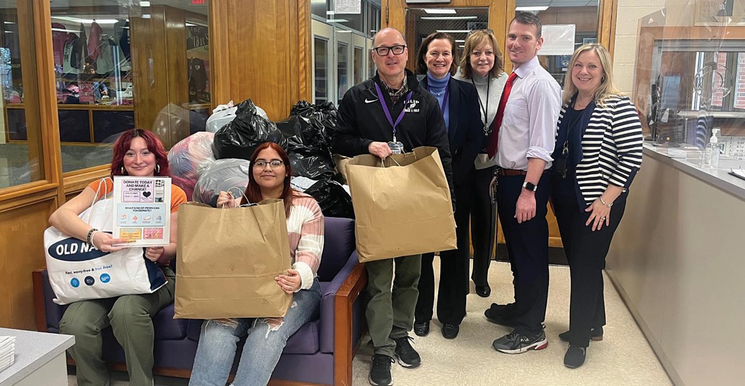 toiletries. They developed a plan, created flyers and posters that were shared with the community, and began a collection following winter break. The response was overwhelming, with the community rallying behind the students and filling donation boxes and bags in the high school’s main office with clothing, blankets and toiletries.
