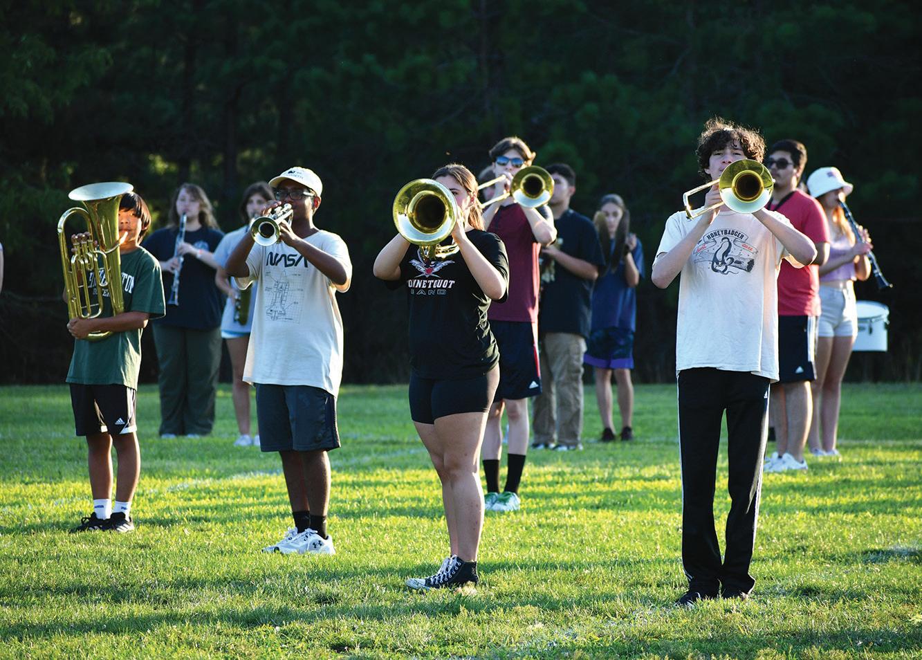 Led by band directors Greg Johnson and Stacy Stollberger, the marching band’s student-musicians practiced marching basics and focused on learning and memorizing the music
