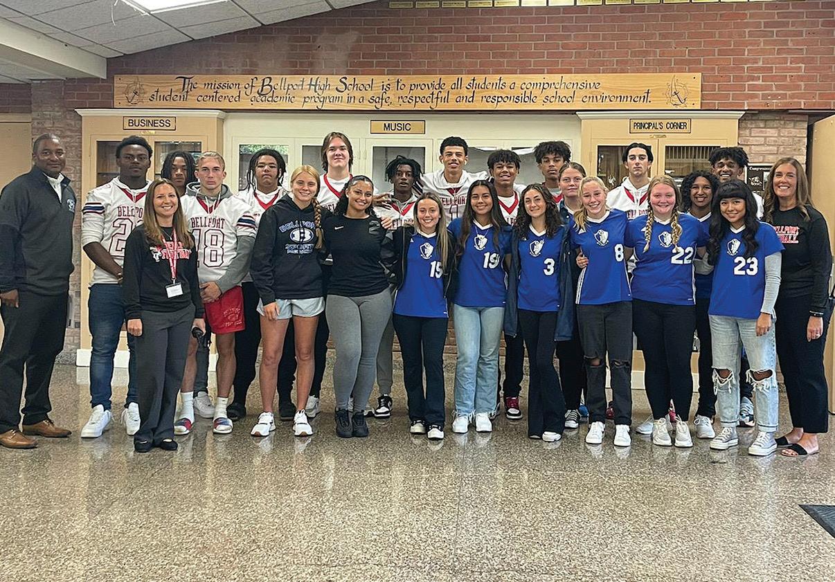 The program kicked off at Kreamer Street Elementary School on Sept. 23, where 19 Bellport High School football players and girls varsity soccer team members visited third graders for a full day of bonding and learning. Serving
