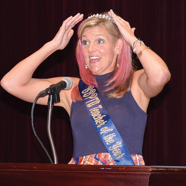 - Prior to speaking to her colleagues on Superintendent’s Conference Day, Bayport-Blue Point 2021 Teacher of the Year Carly Gayer donned a tiara and banner for fun.
