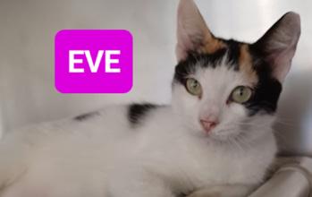 EVE 1 year old female. Beautiful classic Calico. Outgoing.
