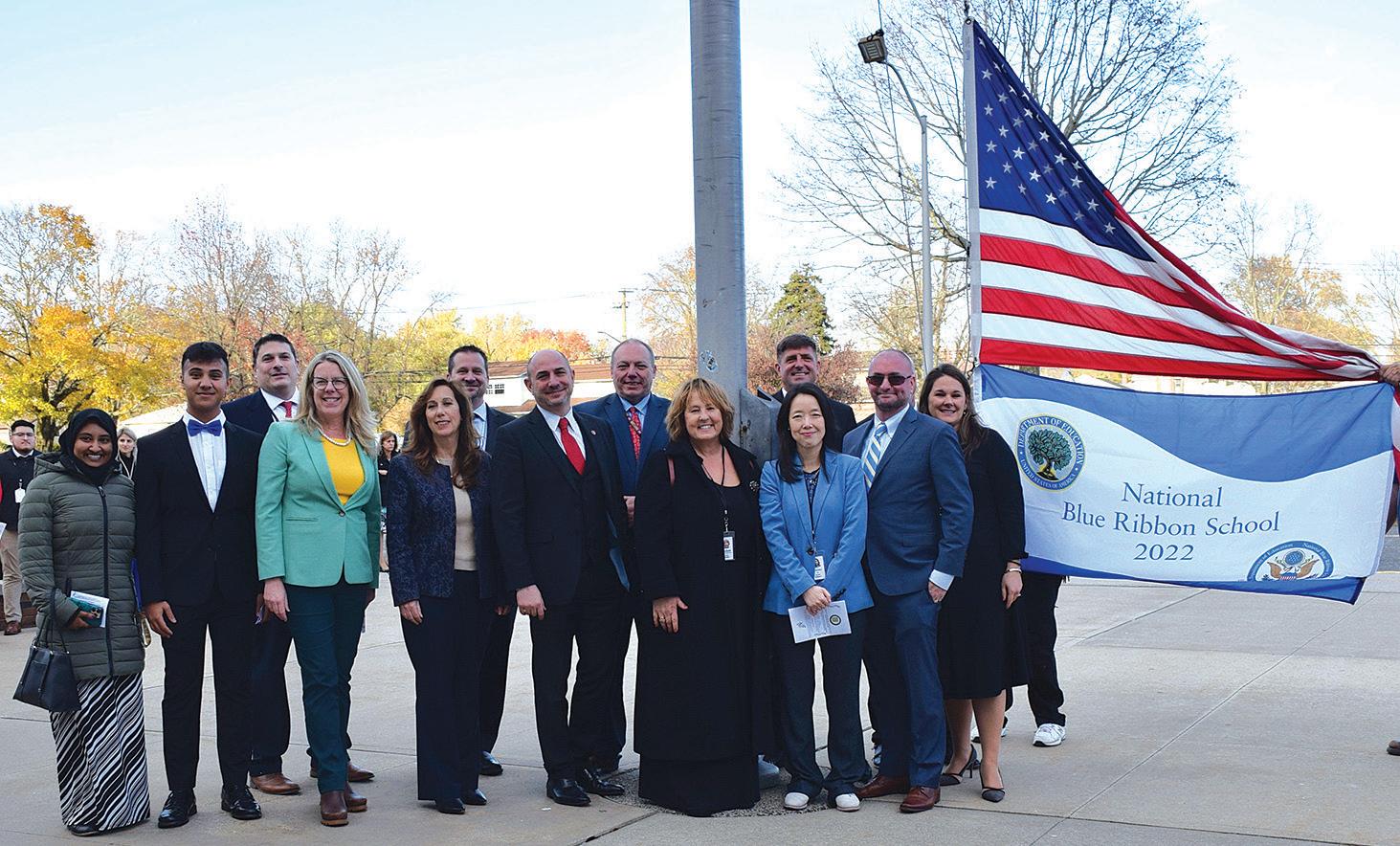 In honor of being named a 2022 National Blue Ribbon School by the U.S. Department of Education, Ward Melville High School in the Three Village Central School District held a ceremony. District administrators, Ward Melville High School