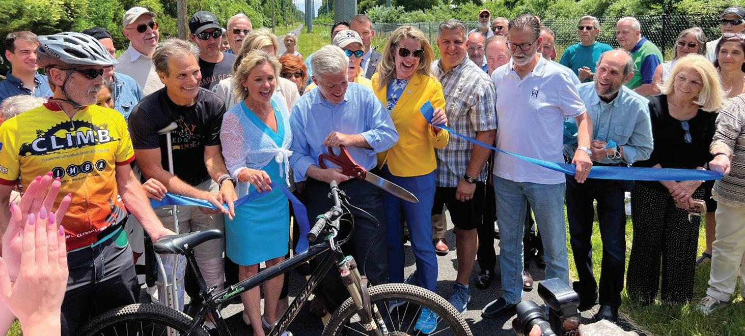 LIFE AWARD - Pictured: Suffolk County Legislator Sarah Anker and County Executive Steve Bellone celebrate the ribbon cutting for North Shore Rail Trail with supporters and stakeholders.
