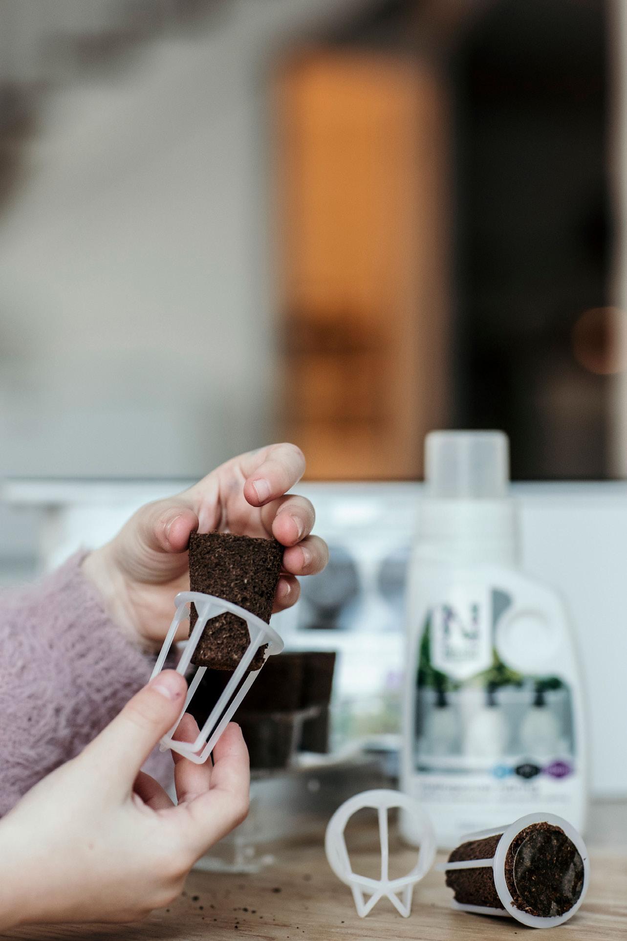6 wkładów do uprawy z kompostowalnych włókien kokosowych i torfu oraz trochę nawozu, z zasianą bazylią. Dostosowano do uprawy hydroponicznej, tzn. uprawy w wodzie.