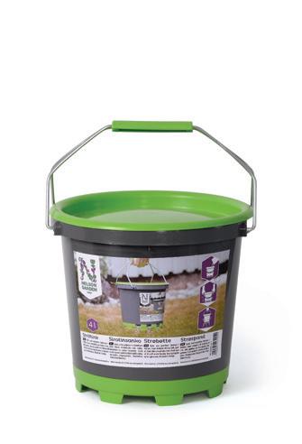 Wiadro z regulowanymi otworami w dnie. Inteligentne wiadro do rozrzucania np. wapna, nawozu, soli lub nasion trawy. Łatwe w użyciu. Przekręcić wiadro do żądanej wielkości otworów. Pojemność 4 litry.