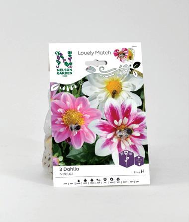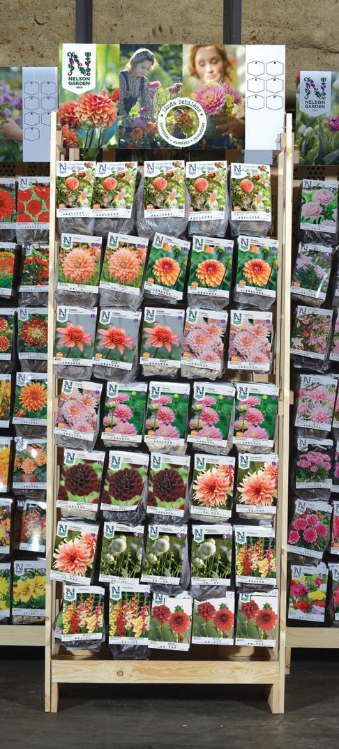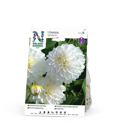 ART. NO PRISGRUPPE 73910 Normalpakker A 73920 ” B 73930 ” C 73940 ” D 73950 ” E 73980 Lovely Match H 73990 BigPack Z 232 NELSON GARDEN 72020 Skjevkrone blå Achimenes 5 I E 72050 Skjermagapant blå Agapanthus 2 I E 72070 Anemone 'Mister Fokker' blå De Caen Anemone coronaria 12 7/8 C 72080 Anemone blandede De Caen Anemone coronaria 10 7/8 C 72090 Anemone blandede St Bridgid Anemone coronaria 12 7/8 D 72100 Villakeleie blandede Aquilegia vulgaris 2 I B 72125 Knollbegonia Bertinii-gruppen oransjerød Bertinii Begonia x tuberhybrida, boerenbegonia 1 18/20 E 72135 Knollbegonia rød dobbel Begonia x tuberhybrida 2 4/5 C 72155 Hengebegonia rød Pendula Begonia x tuberhybrida 2 3/4 B 72190 Montbretia 'Lucifer' oransje Crocosmia 7 8/10 C 72205 Georgine 'Dragon Ball®' oransje Enkle Dahlia x pinnata 1 I E 72218 Georgine 'Pretty Woman' lilla Enkle Dahlia x pinnata 1 I E 72225 Enkel georgine Topmix red rød Enkle Dahlia x pinnata 1 I B 72232 Georgine 'Sneezy' hvit Enkle Dahlia x pinnata 1 I C 72237 Anemonegeorgine 'Totally Tangerine' oransje Anemon Dahlia x pinnata 1 I E Nyhet! 72238 Georgine 'Happy Singel Kiss' Aprikos Enkel georgine Dahlia x pinnata 1 I E 72242 Anemonegeorgine 'Bayou' lilla Anemon Dahlia x pinnata 1 I E 72247 Anemonegeorgine 'Take off' rosa Anemon Dahlia x pinnata 1 I D 72280 Halskragegeorgine 'Pooh' rød,gul Halskrage Dahlia x pinnata 1 I D 72302 Dekorative georginer 'Almands Joy' rosa Dekorativ Dahlia x pinnata 1 I D 72305 Dekorative georginer 'Arabian Night' mørkerød Dekorativ Dahlia x pinnata 1 I C 72310 Dekorative georginer 'Ariko 9707' rødlilla, hvit Dekorativ Dahlia x pinnata 1 I C Nyhet! 72312 Georgine 'Seniors Hope' Rosa/burgunder Dekorative georginer 1 I E 72330 Dekorative georginer 'Bluesette' lilla Dekorativ Dahlia x pinnata 1 I B 72332 Dekorative georginer 'Rothensee' rød Dekorativ Dahlia x pinnata 1 I C 72335 Dekorative georginer 'Café au Lait' rosa Dekorativ Dahlia x pinnata 1 I E Nyhet! 72337 Georgine 'Labyrinth' Rosa/aprikos Dekorative georginer 1 I D Nyhet! 72342 Georgine 'Break Out' Krem rosa Dekorative georginer 1 I E 72355 Dekorative georginer 'Crazy Love' hvit, lyserosa Dekorativ Dahlia x pinnata 1 I D 72358 Dekorative georginer 'Double Shine' rosalilla, gul Dekorativ Dahlia x pinnata 1 I D 72365 Dekorative georginer 'Ellen Houston' rød, mørke blad Dekorativ Dahlia x pinnata 1 I C 72367 Dekorative georginer 'Emory Paul' rosa Dekorativ Dahlia x pinnata 1 I E 72372 Dekorative georginer 'Manoa' rød Dekorativ Dahlia x pinnata 1 I D 72375 Dekorative georginer 'Extase' lakserosa, gul Dekorativ Dahlia x pinnata 1 I C 72376 Dekorative georginer 'Feline Yvonne' rosalilla Dekorativ Dahlia x pinnata 1 I E 72380 Dekorative georginer 'Fleurel®' hvit Dekorativ Dahlia x pinnata 1 I C Nyhet! 72382 Georgine 'Orange Fubuki' Lakesrosa Dekorative georginer 1 I D 72410 Dekorative georginer 'Heatwave' rød Dekorativ Dahlia x pinnata 1 I B 72412 Dekorative georginer 'Innocent Silence' gul Dekorativ Dahlia x pinnata 1 I C 72417 Dekorative georginer 'Kelvin Floodlight' gul Dekorativ Dahlia x pinnata 1 I C 72422 Dekorative georginer 'Milena Fleur' rosagul Dekorativ Dahlia x pinnata 1 I C Nyhet! 72423 Georgine 'Penhill Watermelon' Rosa/gul Dekorative georginer 1 I E 72425 Dekorative georginer 'Musette' rød, hvit Dekorativ Dahlia x pinnata 1 I B 72434 Dekorative georginer 'Myth' rød, gul Dekorativ Dahlia x pinnata 1 I D 72444 Dekorative georginer 'Pink Isa' rosalilla, hvit Dekorativ Dahlia x pinnata 1 I D 72449 Dekorative georginer 'Red Silence' rød Dekorativ Dahlia x pinnata 1 I C 72451 Dekorative georginer 'Strawberry Cream' rødhvit Dekorativ Dahlia x pinnata 1 I D 72455 Dekorative georginer 'Wittem' hvit, lyselilla Dekorativ Dahlia x pinnata 1 I B 72473 Pompon-georginer ’Cornel Brons’ aprikos Pompon Dahlia x pinnata 1 I D 72475 Dekorative georginer 'La Recoleta' sjokolade Dekorativ Dahlia x pinnata 1 I D 72477 Dekorative georginer 'Wizard of Oz' rosa Ball Dahlia x pinnata 1 I D 72480 Dekorative georginer 'Embassy' lilla Ball Dahlia x pinnata 1 I E 72490 Pompon-georginer 'Nescio' rød Pompon Dahlia x pinnata 1 I B 72495 Pompon-georginer 'Snowflake' hvit Pompon Dahlia x pinnata 1 I C 72530 Kaktusgeorginer 'Chat Noir' svartrød Kaktus Dahlia x pinnata 1 I D 72535 Kaktusgeorginer 'Color Spectacle' oransje Kaktus Dahlia x pinnata 1 I B 72545 Kaktusgeorginer 'Kennemerland' gul Kaktus Dahlia x pinnata 1 I B 72555 Kaktusgeorginer 'My Love' hvit Kaktus Dahlia x pinnata 1 I B 72570 Kaktusgeorginer 'Park Princess' rosa, aprikos Kaktus Dahlia x pinnata 1 I B