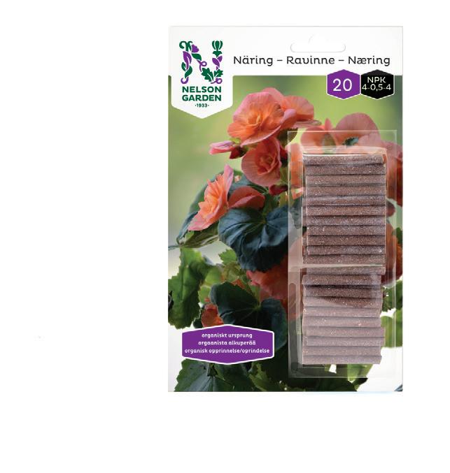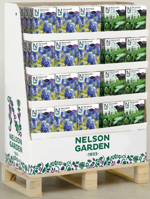 Hydroponisk dyrking 38-42 Forkultivering Potter 43-45 Minidrivhus 46-53 Tilbehør .................................................................................................. 54-58 Plantelys 59-63 Løk Setteløk 64-69 Blomsterløk 70-77 Plenfrø Nelson Garden Nyheter plenfrø 78-79 Nelson Garden Premium plenfrø 80-83 Nelson Garden Basic plenfrø .................................................................... 84-85 Nelson Garden frø pollinatorer 86 Plenfrøblandinger 87-91 Jord & bark Jord 92-107 Kompost 108 Leca 109 Bark 110-111 Sand 112 Plantevern Biostimulanter: Biohumus & Biohumus Terra 113-115 Plantenæring & gjødsel 116-128 Beskyttelse 129-130 Feller 131-135 Takbehandling 136