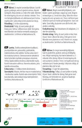 11744 Dill, Blad- 'Bouquet' 7312600117440 11738 Ert, Sukker- 'Norli' Organic 7312600117389 11725 Kinesisk Brokkoli 'Kichi' 7312600117259 11713 Kål, Grønn- 'Nero di Toscana' 7312600117136 11716 Kål, Grønn- 'Half Tall' 7312600117167 11755 Kål, Kina- 'Natsuki' F1 7312600117556 11723 Kål, Pak Choi Colour Crunch Blend 7312600117235 11709 Kål, Spiss- 'Kalibos' 7312600117099 11710 Kål, Spiss- 'Filderkraut' 7312600117105 11733 Portulakk, Vinter- Organic 7312600117334 11727 Reddik 'De dix-huit jours' 7312600117273 11734 Ruccola Organic 7312600117341 11749 Rødbete, Blad- 'Bull´s Blood' 7312600117495 11704 Salat, Plukk- 'Cerbiatta' 7312600117044 11705 Salat, Romano- 'Little Gem' Organic 7312600117051 11732 Salat, Vinter- 'Vit' Organic 7312600117327 11708 Sibirsk bladraps 'Red Russian' 7312600117082 11756 Skorsonerrot 'Duplex' Organic 7312600117563 11736 Spinat, Nyzealandsk Neuseelaender Organic 7312600117365
