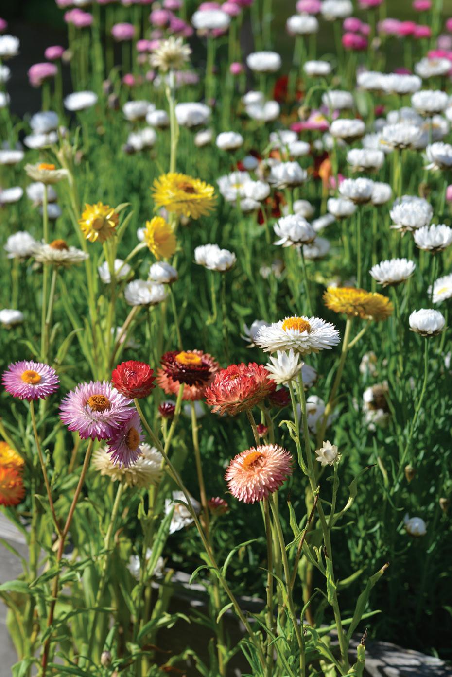 EVIGHETSBLOMSTER Dekorative "evighetsblomster". En fargerik miks av ulike evighetsblomster kan bidra til å forlenge sesongen i form av en tørket bukett.