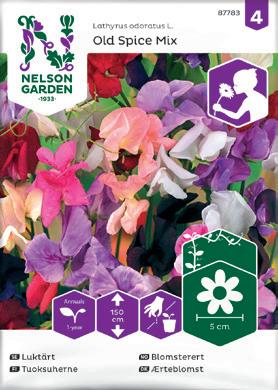 90127 Böna, Rosen-, Celebration 90277 Dill, Vanlig, Como 90424 Koriander 90435 Krasse, Grekisk 90682 Mangold, Bright Yellow, gul 90689 Mangold, Rhubarb Chard, röd 90690 Mangold, White silver 3, Organic 93290 Mix, Sommarblommor, blå 93319 Blomstermorot, Dara 93350 Blomstertobak, Stor-, Grandiflora, vit 93362 Blåklint, Black Boy, svart 93368 Blåklint, Blue Boy, blå 93824 Krasse, Slinger-, Milkmaid 93954 Lin, Spånads-, blå 94034 Luktärt, Lord Nelson, blå 94066 Luktärt, Royal Rose, rosa 94082 Luktärt, Royal White, vit 94172 Malva, Sommar-, Mont Blanc, vit 94180 Malva, Sommar-, Silver Cup, rosa 94724 Prydnadsgräs, Frosted Explosion 94732 Prydnadsgräs, Pony Tails 94840 Riddarsporre, Prakt, Blue Donna 94933 Ringblomma, Ivory Princess 94940 Ringblomma, Radio 95012 Rosenskära, Candy Stripe 95044 Rosenskära, Purity, vit 95048 Rosenskära, Xanthos 95056 Rosenskära, Fizzy Pink Dark Center