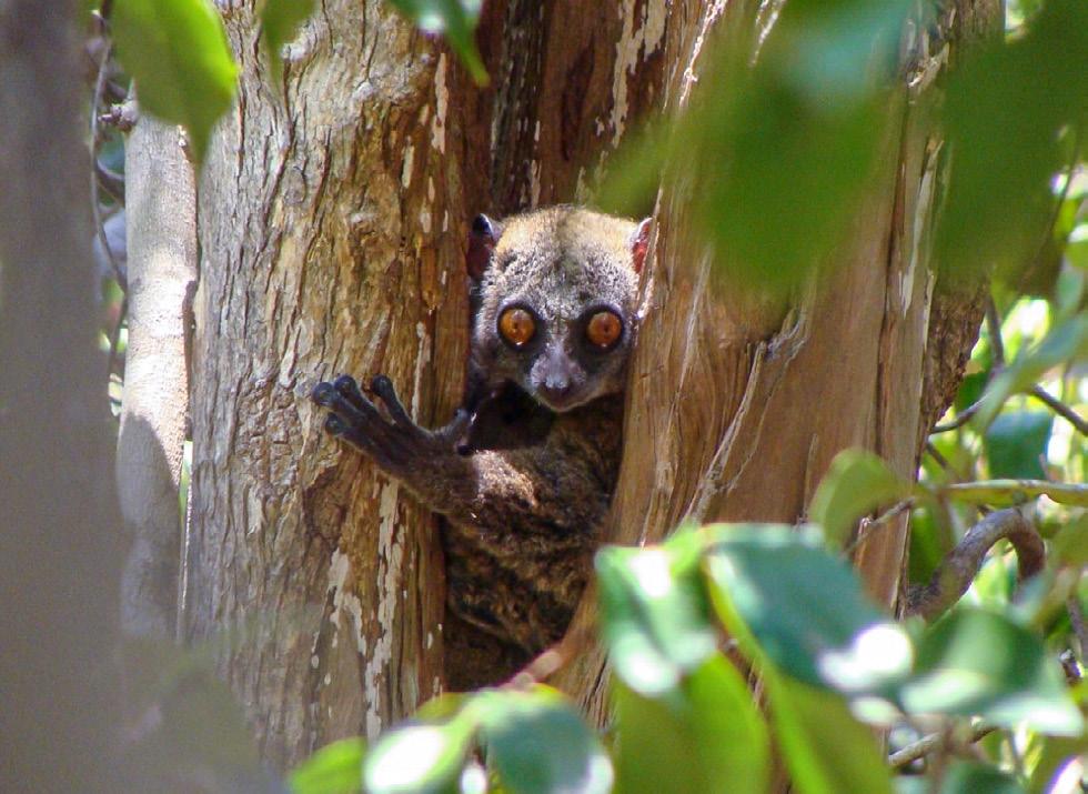 A lemur gazes out from a tree in a community-managed forest in Madagascar.