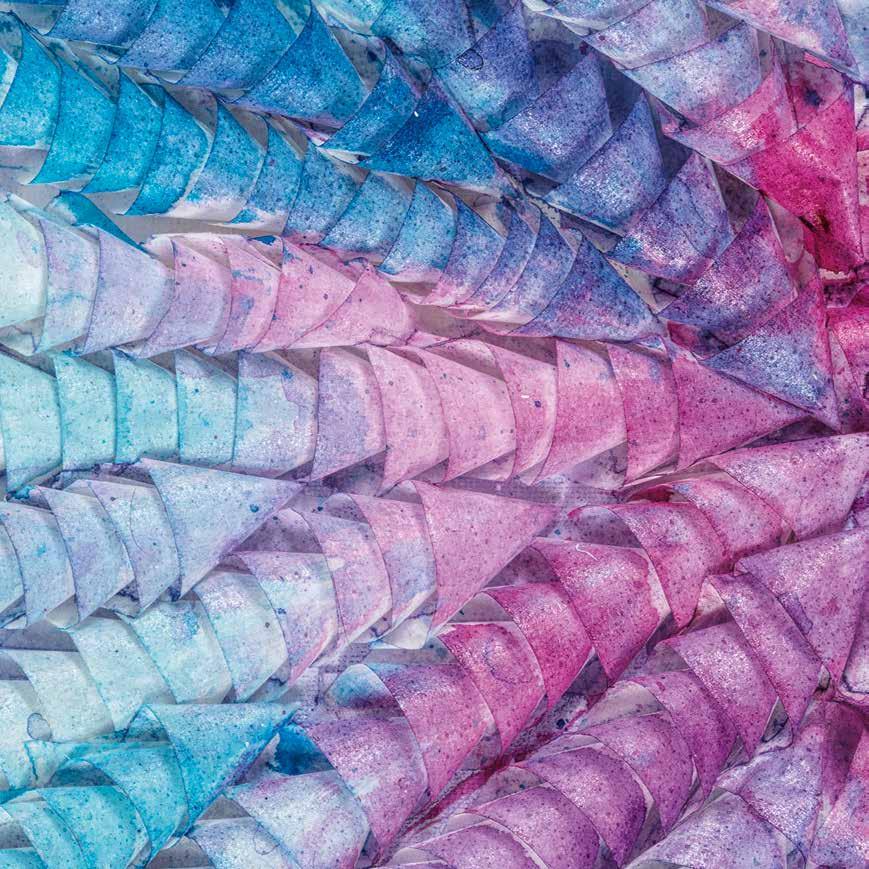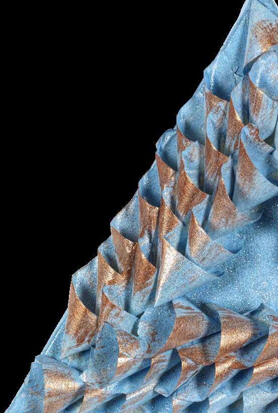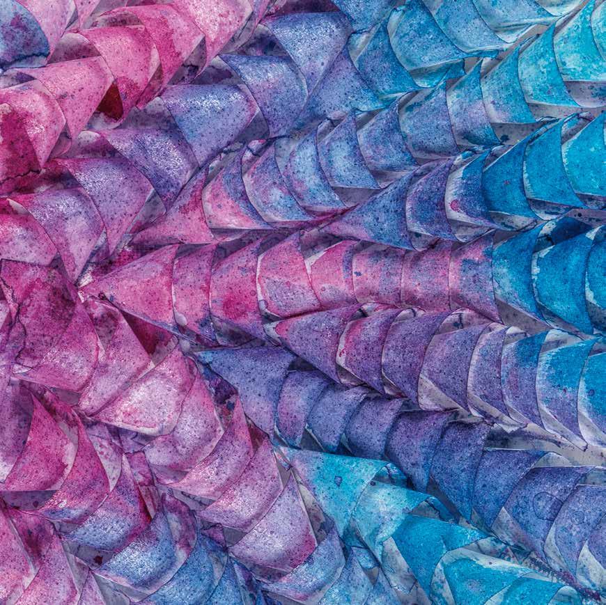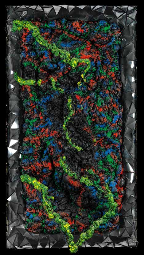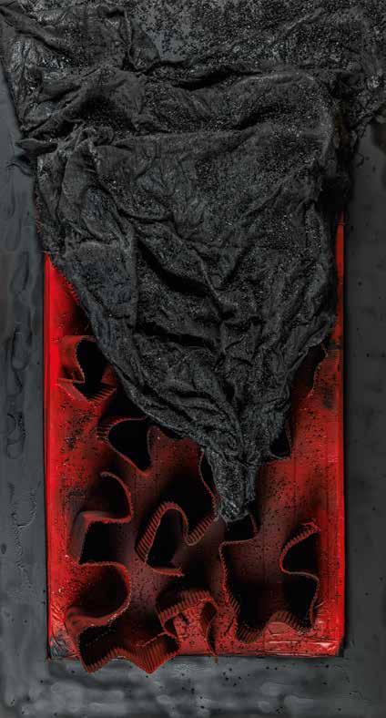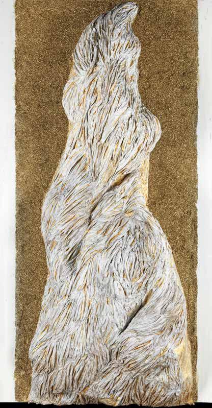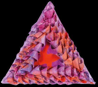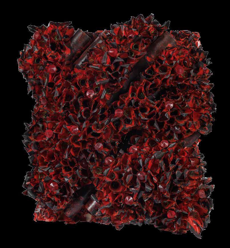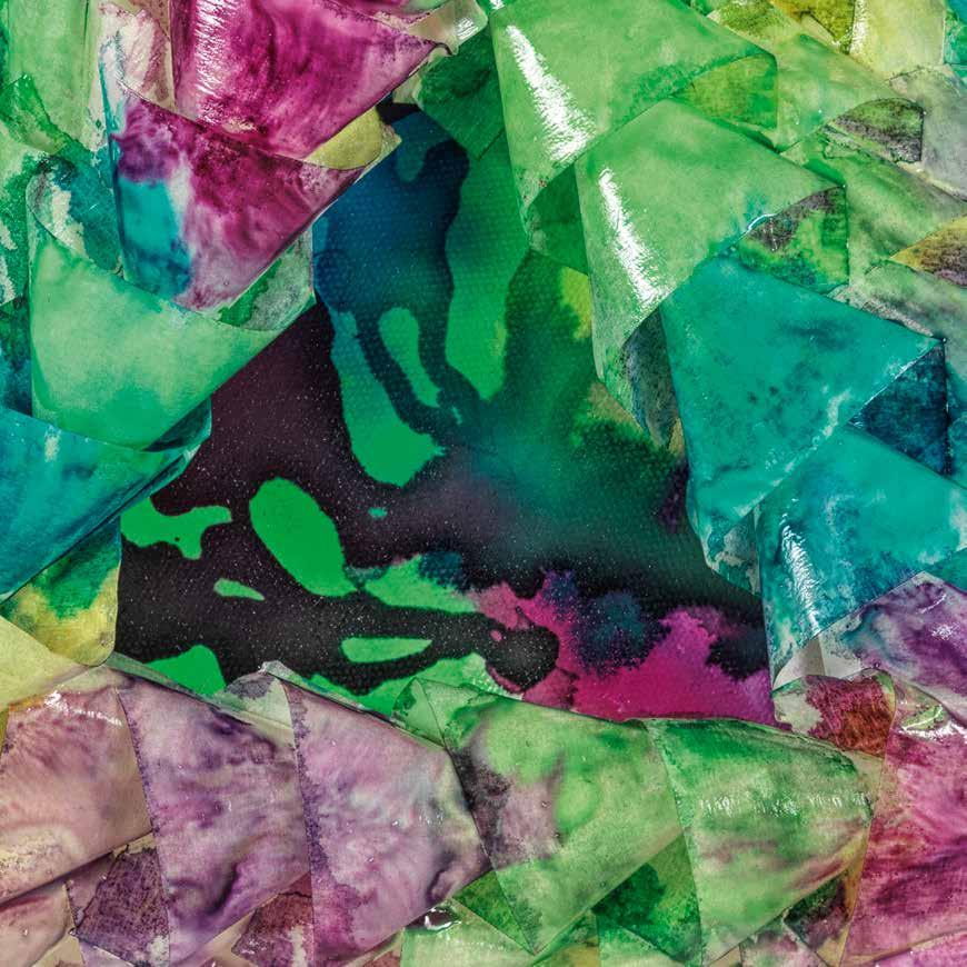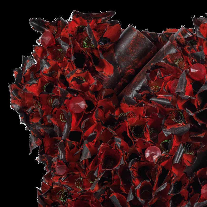 The material used, being ecological and recyclable, acquires a symbolic extension as it is regenerated in the hands of the creator who awards shape and color throughout its structure while lying at the root of the work.