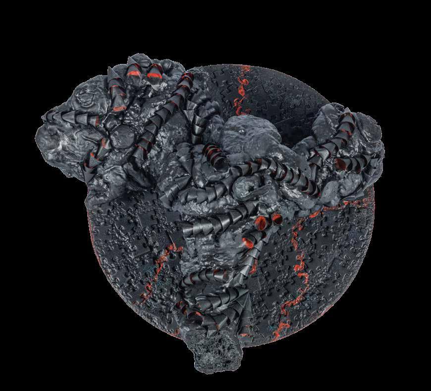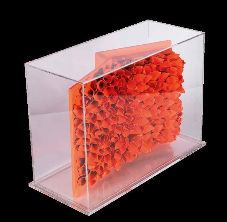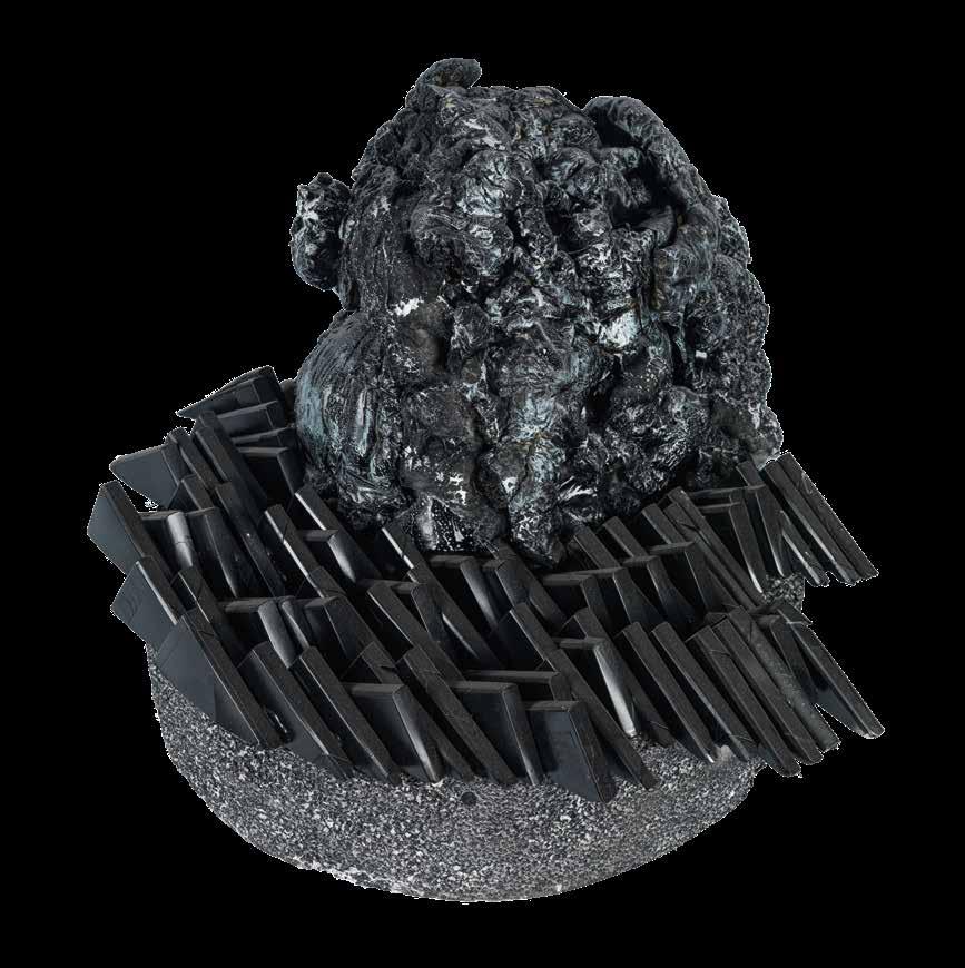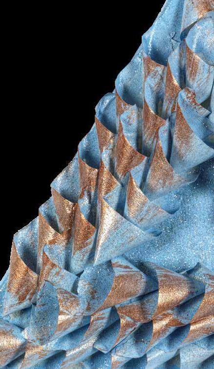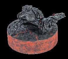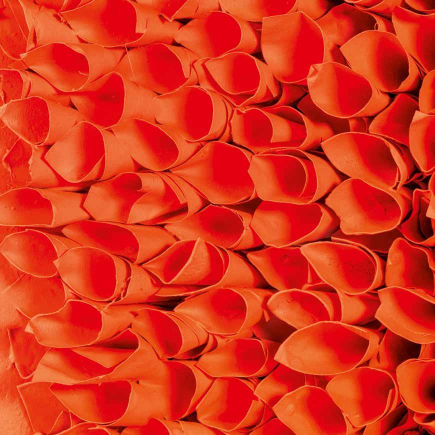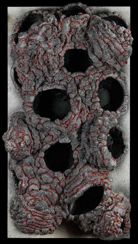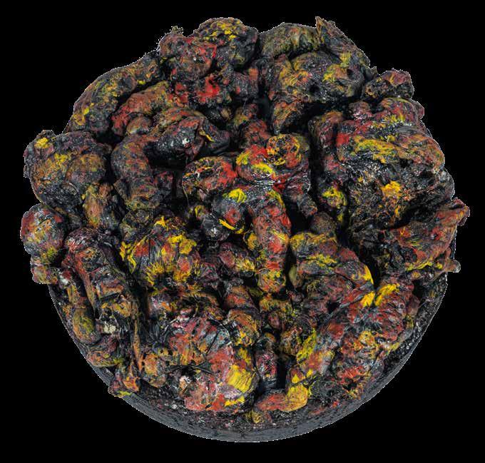 The surfaces’ relief exhibits a scaly texture and distinct layers of color, aspires to catch the viewer’s eye, create a pleasant visual surprise; an unprecedented jolt of impressions that combined with the shape of each form, establish an inner balance and a status of freedom from any existential restriction.