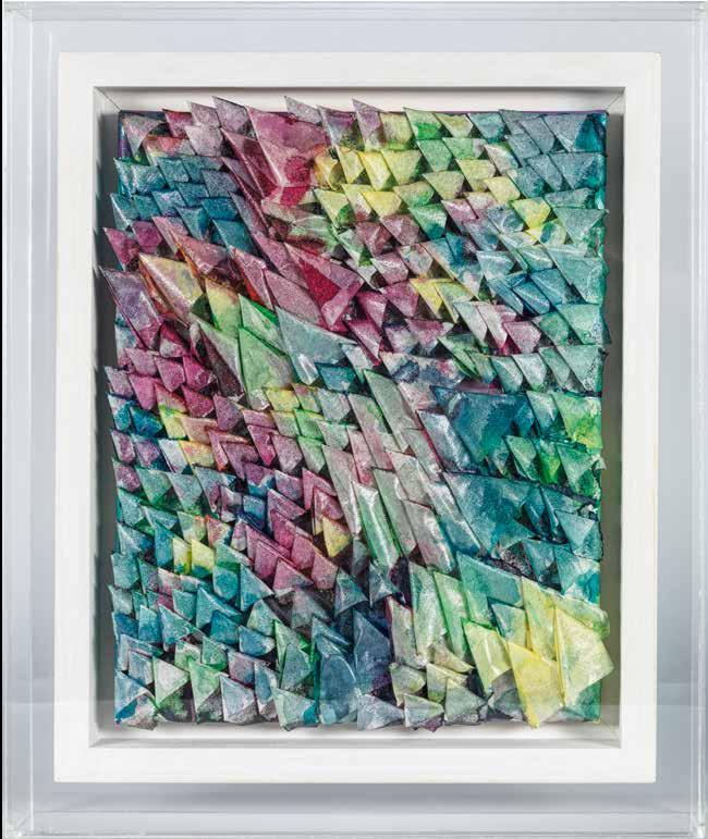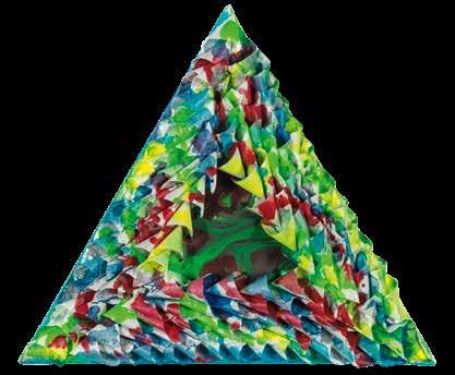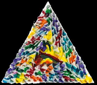 The creator’s immaculate source of inspiration is reflected on the abundant use of colors; all aspects and life powers are gathered and symbolized as an experience of invocation in existence and creation. The exuberant use of color and the selected random shape resulting thereof, undoubtedly convey emotions and the imprint, i.e., the eseence of every existence.