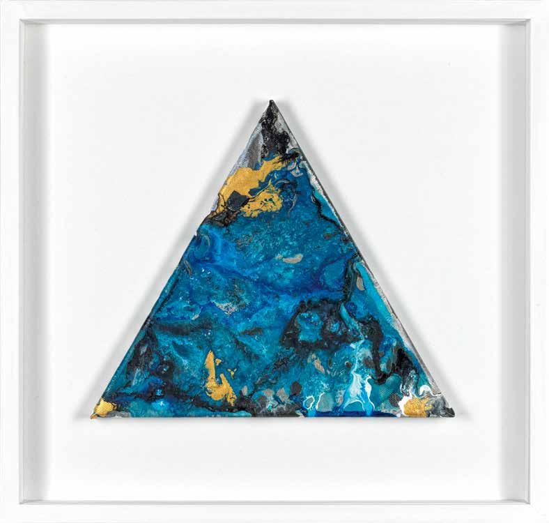Her paintings are inscribed on purely geometric surfaces with images inspired by random, bold and infinite expression. Compositions of explosive color