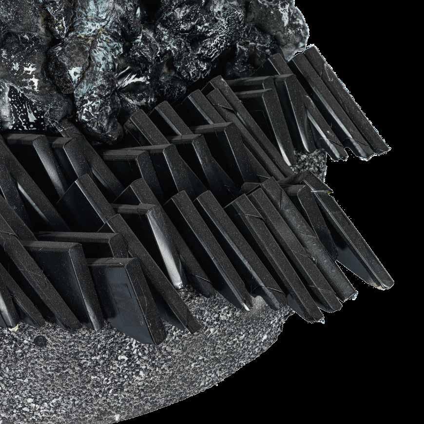 The perspective of the composition is universal having ostracized every dimension of perspective. The expressionless material presented in various sizes acquires volume, movement of release or even escape in the pulse of a living entity, an early creeping existence.
