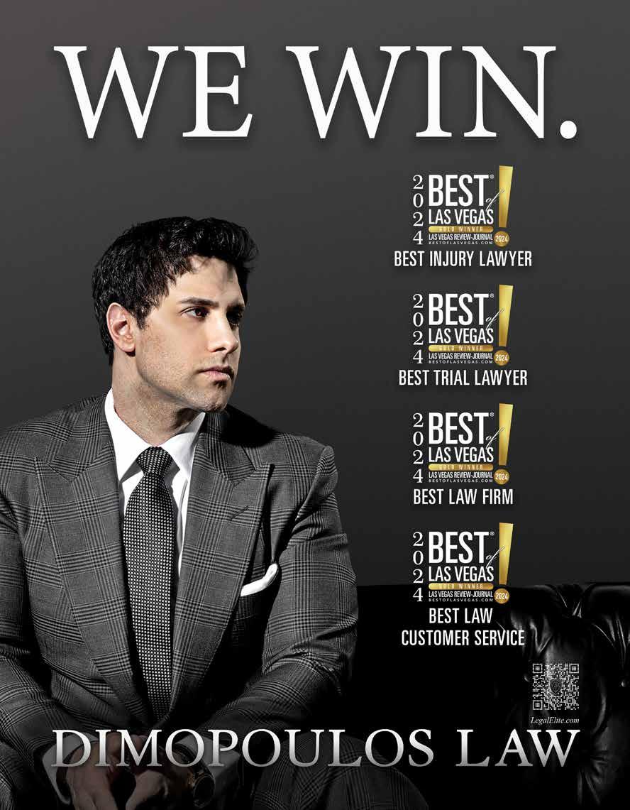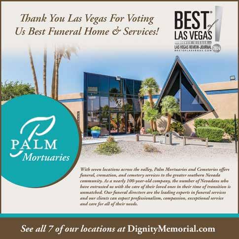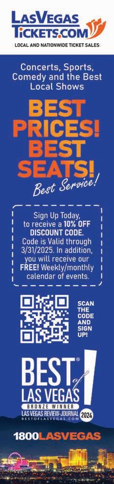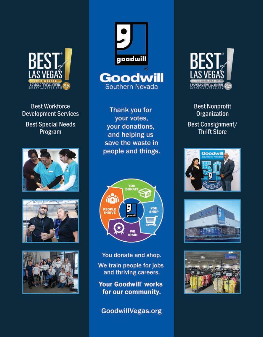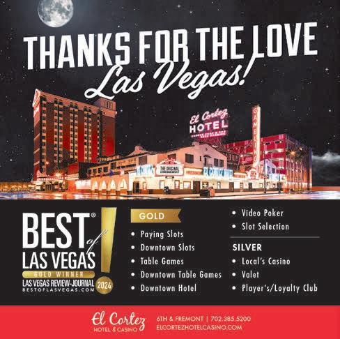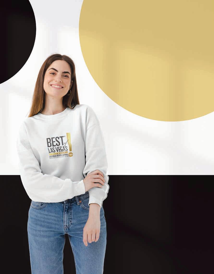 Best of Las Vegas | VOLUME 43 is published as an advertising feature and is distributed to the Sunday subscribers of the Las Vegas Review-Journal, Inc. along with other select locations. This is not a function of or product from the newsroom. To be included in future publications, or to reach our audience, please contact your sales representative, or call 702-383-0388. Winners and ranking was based on independent voting and is not an endorsement by and may not necessarily reflect the opinions of the Las Vegas Review-Journal Inc., NERUS Strategies, LLC or any parent companies. ©2024 Las Vegas Review-Journal, Inc. and NERUS Strategies, LLC. Images used in winner description are used to illustrate the category. Where possible we have used winner’s submitted photography. The Best of Las Vegas and the unique logo are registered trademarks of the Las Vegas Review-Journal, Inc. and may only be used with express, written permission. Content found in this book may not be repurposed or used in any way without express written permission. Best of Las Vegas and BestofLasVegas.com are powered by BestofPrograms.com. Printed in Las Vegas. Please pass along when finished, and recycle when possible.