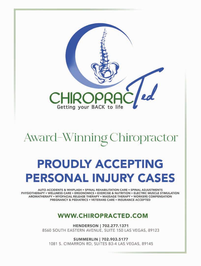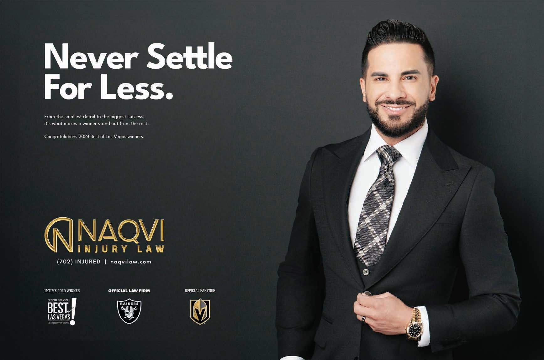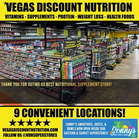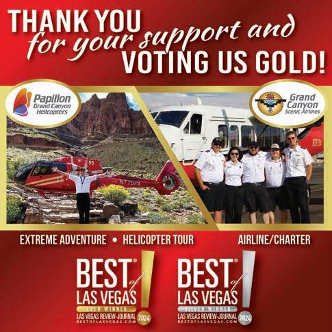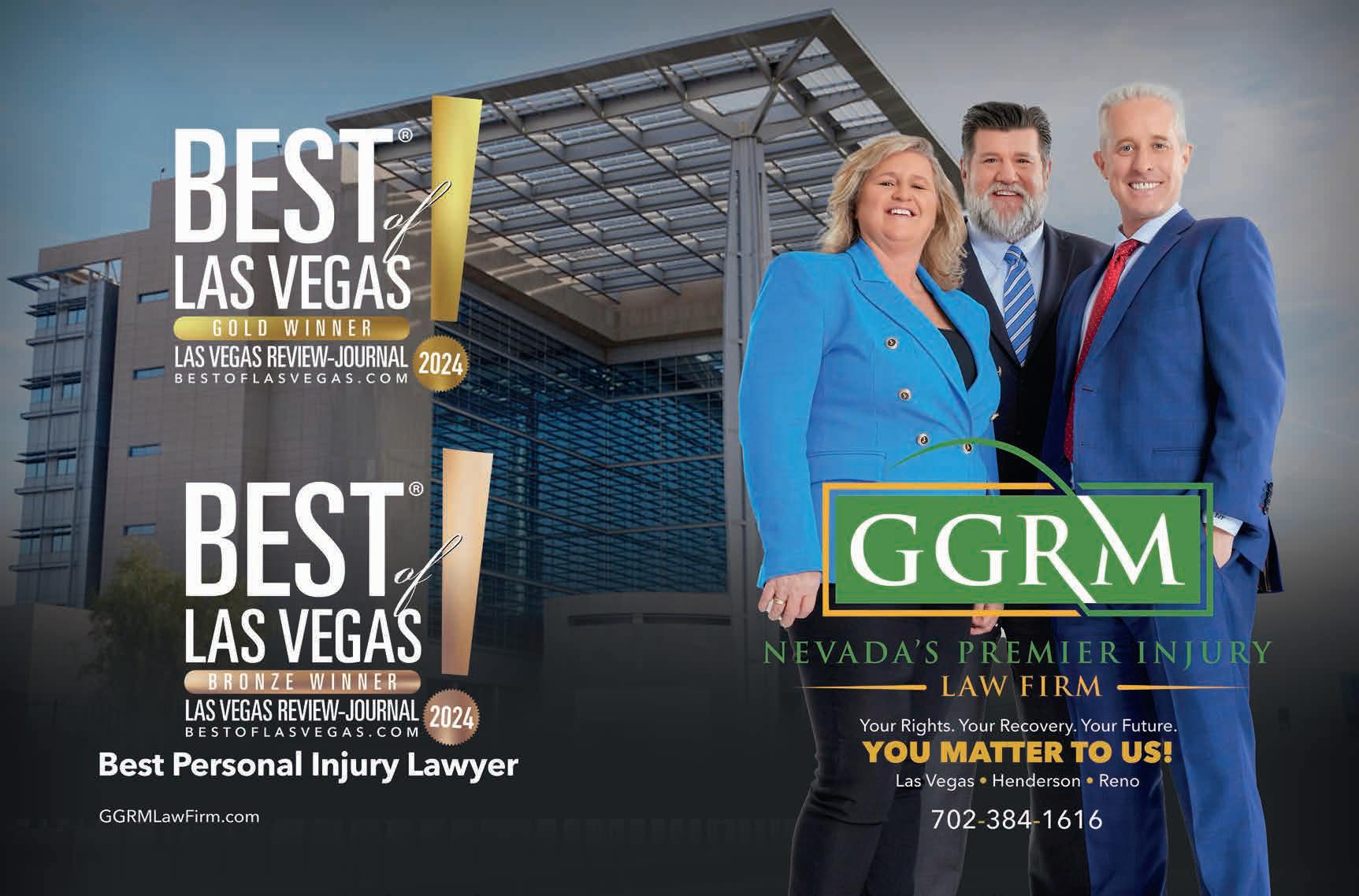 Best of Las Vegas | VOLUME 43 is published as an advertising feature and is distributed to the Sunday subscribers of the Las Vegas Review-Journal, Inc. along with other select locations. This is not a function of or product from the newsroom. To be included in future publications, or to reach our audience, please contact your sales representative, or call 702-383-0388. Winners and ranking was based on independent voting and is not an endorsement by and may not necessarily reflect the opinions of the Las Vegas Review-Journal Inc., NERUS Strategies, LLC or any parent companies. ©2024 Las Vegas Review-Journal, Inc. and NERUS Strategies, LLC. Images used in winner description are used to illustrate the category. Where possible we have used winner’s submitted photography. The Best of Las Vegas and the unique logo are registered trademarks of the Las Vegas Review-Journal, Inc. and may only be used with express, written permission. Content found in this book may not be repurposed or used in any way without express written permission. Best of Las Vegas and BestofLasVegas.com are powered by BestofPrograms.com. Printed in Las Vegas. Please pass along when finished, and recycle when possible.