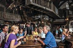 A charming tavern in Hogsmeade™, Three Broomsticks at Universal Orlando Resort offers hearty British fare and the iconic Butterbeer™. Guests can enjoy classics like Fish and Chips, Shepherd’s Pie, and ‘The Great Feast’ surrounded by weathered wood beams, cast-iron chandeliers, and whimsical decor. The cozy inn captures the magic of the wizarding world, making it a must-visit dining spot for Harry Potter fans.