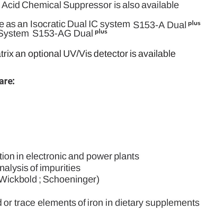 Together with readymade buffers, columns and reagents the S 433 analyzer offers:
