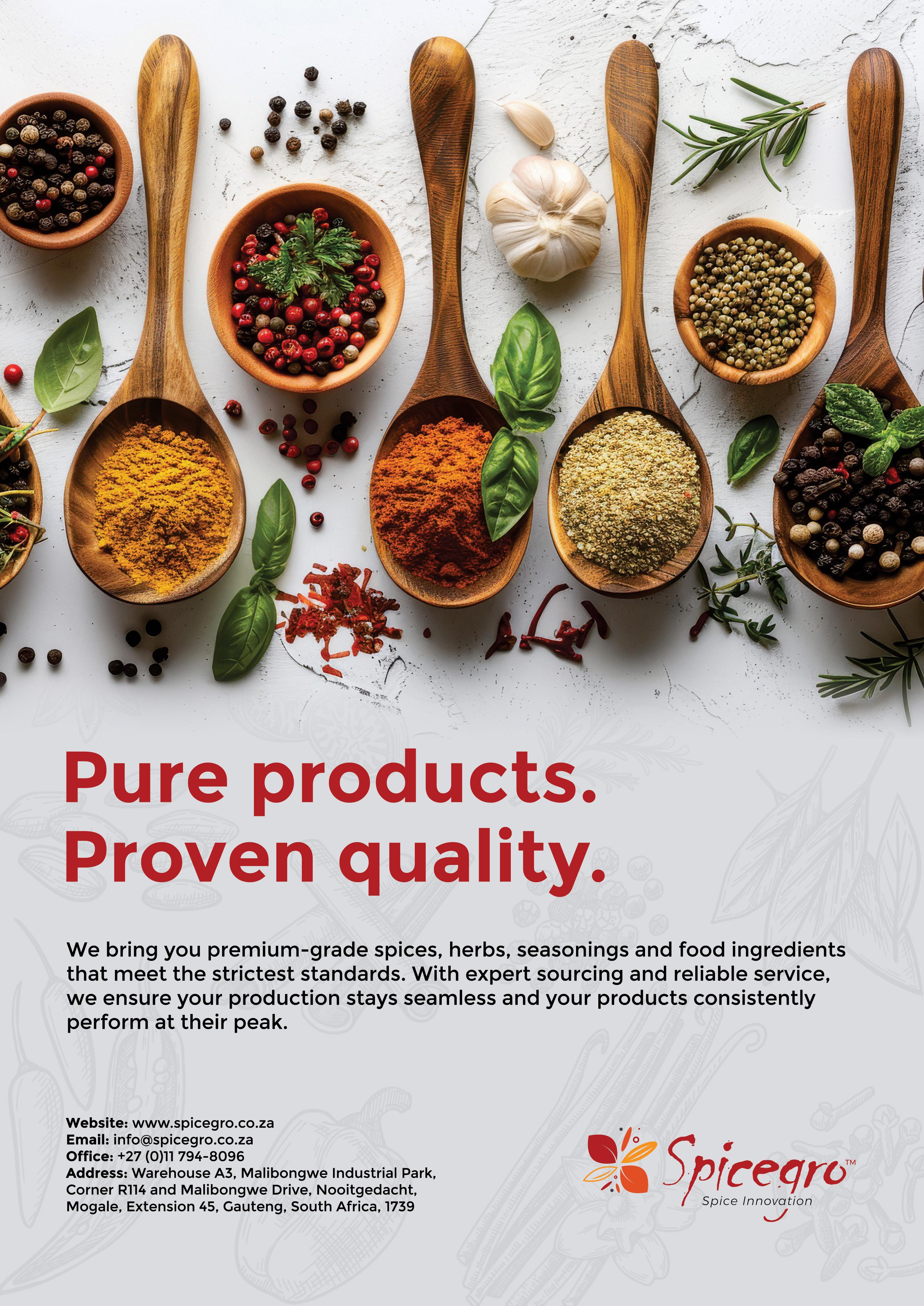 For cutting-edge safety innovations, turn to Inspection & Detection (p. 39–40). AI-powered inspection systems and advanced labelling solutions are elevating food safety standards. In beverages, we unpack the latest trends in Wines, Beers & Ciders (p. 32). From eco-friendly packaging to fermenting technologies, this section captures the essence of consumer-driven innovation. Finally, step into the world of packaging with our Form, Fill & Seal feature (p. 44). Learn how Siyaka’s investment in MIRAFLEX installations enhances operational efficiency and meets evolving packaging demands. This edition offers an exciting journey through innovation, sustainability, and leadership. Happy reading!