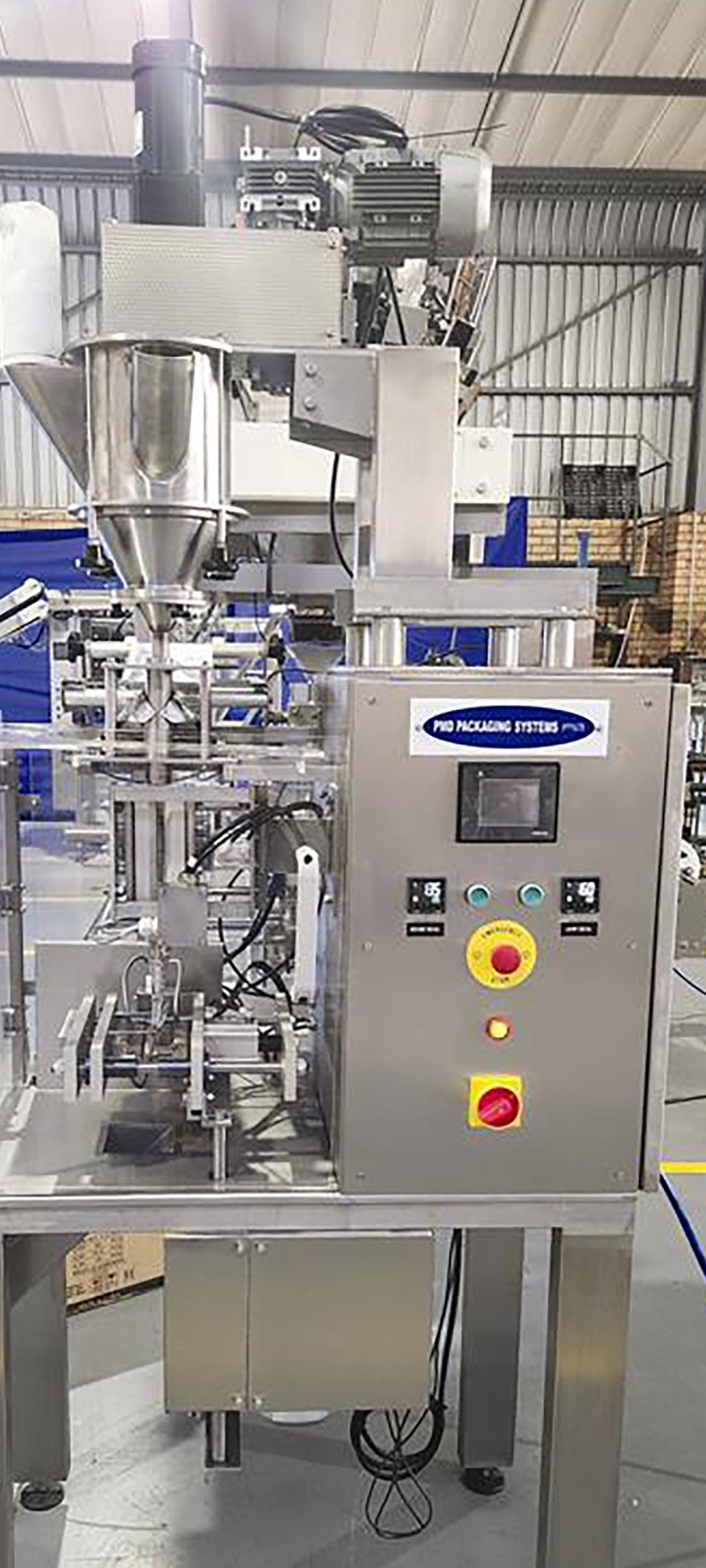The locally manufactured Sigma range of VFFS machines that covers a wide range of bag sizes, together with PMD’s Auger dosers, cup fillers and hoppers. These machines can pack a range of products from 16g snacks to 8kg of dog pellets, covering a wide variety of bag sizes, weights and products. The PMD automatic Baler is very popular in the milling and sugar packing industry and can be found in factories across the African continent.