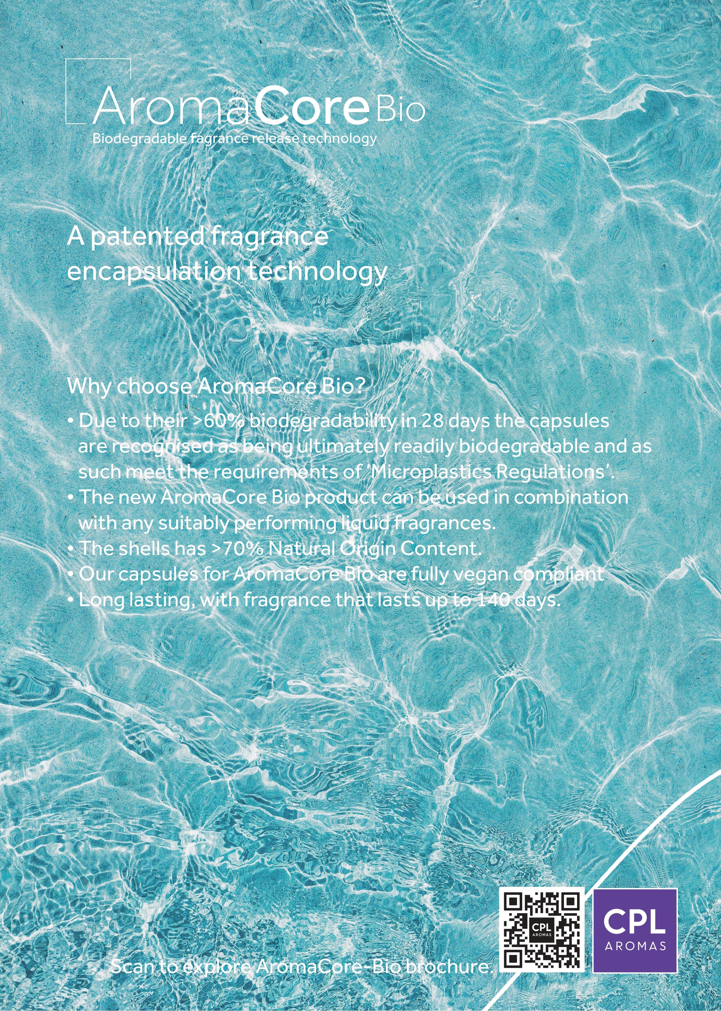 More than a fragrance technology, AromaCore Bio is a statement of intent. It reflects CPL Aromas’ dedication to creating solutions that are innovative, responsible and future-ready. As the home care sector continues to evolve, AromaCore Bio empowers brands to meet consumer expectations while contributing to a cleaner, safer world.