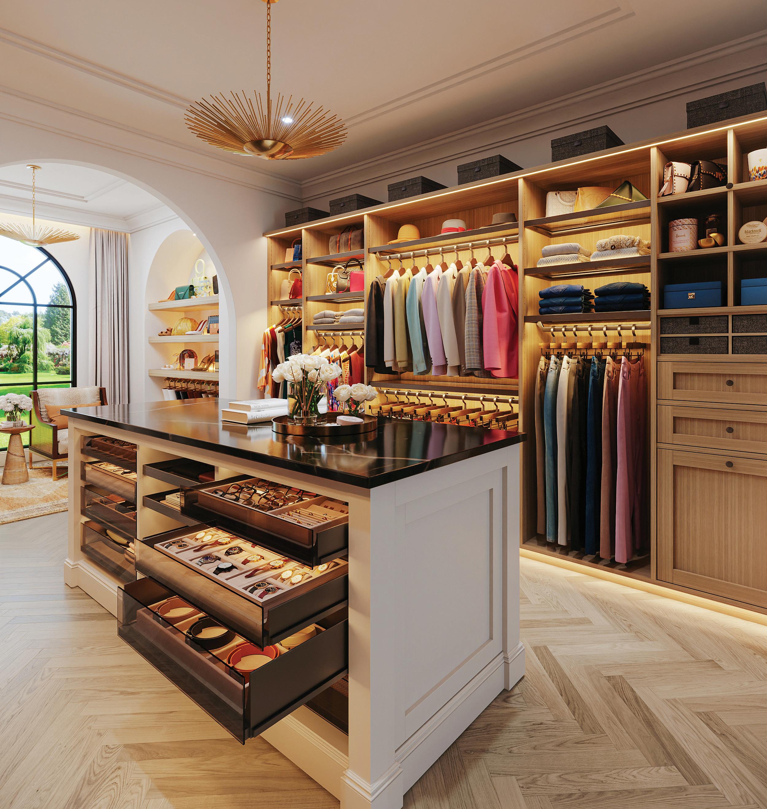 Sao Paulo-based furniture brand Ornare recently introduced the world to its Timeless Collection, which features everything you need for a showstopping dressing room (pictured above), including a closet, an island (with lighted drawers), shelving, ventilated doors, and a clothing rack. A leathertopped dressing table boasts a lighted mirror and sliding trays