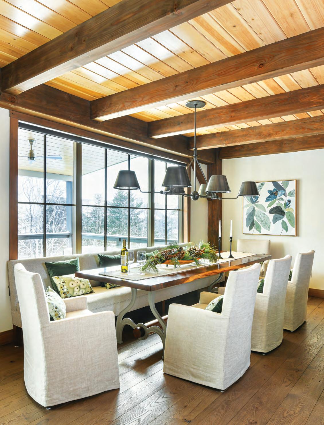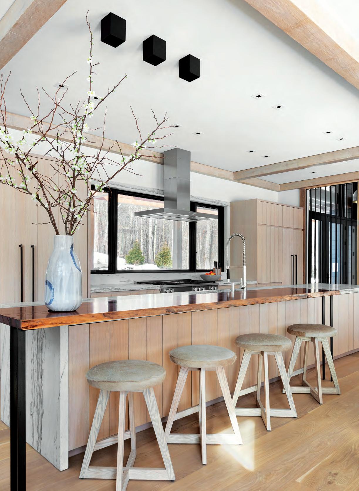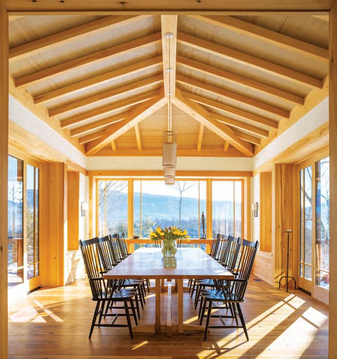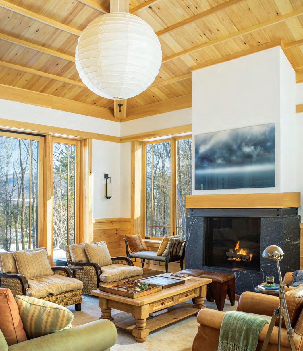 y childhood home was on a mountainside. My father used to joke that it’s no wonder one of my legs didn’t grow longer than the other after years of playing in our steeply graded yard. As an adult, I’m absolutely a flatlander: my home overlooks Massachusetts Bay with barely an incline in sight. So this issue’s homes spark a bit of nostalgia for me. Three are nestled among New England’s most iconic mountain ranges: the White Mountains, the Green Mountains, and the Berkshires. Two are slope side, including one where the homeowners can check trail conditions simply by looking out the window. The third, a primary residence in northern Vermont, blends seamlessly with the landscape, right down to the shou sugi ban exterior finish that makes the structure all but disappear into the trees. Inside each home, all of the comforts of winter living can be found: clever accommodations for inevitable guests (with two of the most magical bunk rooms I’ve seen), cozy nooks for tucking away with a book (in addition to nooks for the books themselves), and an indoor basketball court that will chase away your cold-weather blues in the time it takes to lace up your sneaks.