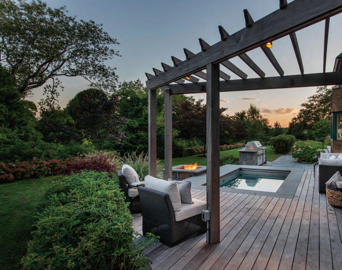 What could be better than a luxe Boston apartment, many stories up, with an abundant cutting garden at arm’s reach. I mean, is that not the ultimate? And if the promise of daily fresh flowers wasn’t enough, the design team envisioned an outdoor kitchen, TV, and plentiful seating with a fire feature for extended seasonal use—I could park myself there year-round. Turn to page 70 for more. Or consider the Brookline, Massachusetts, space on page 86, where the designers deftly reworked key areas so that the main living space flows seamlessly onto a terrace with a spa, plunge pool, and infrared sauna.