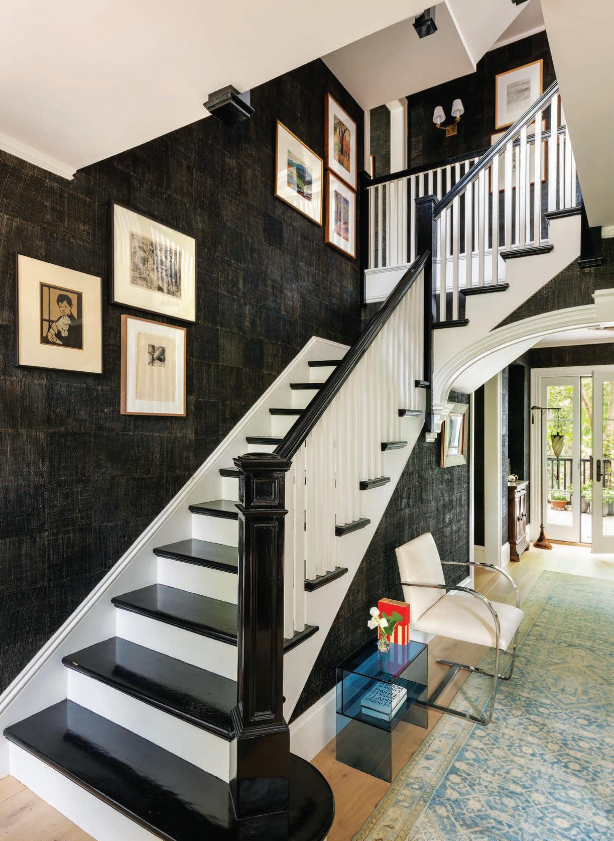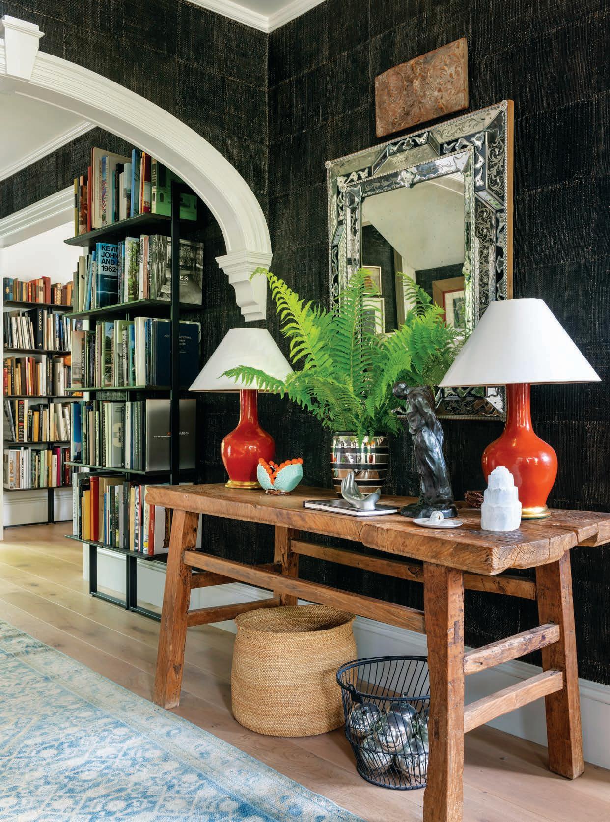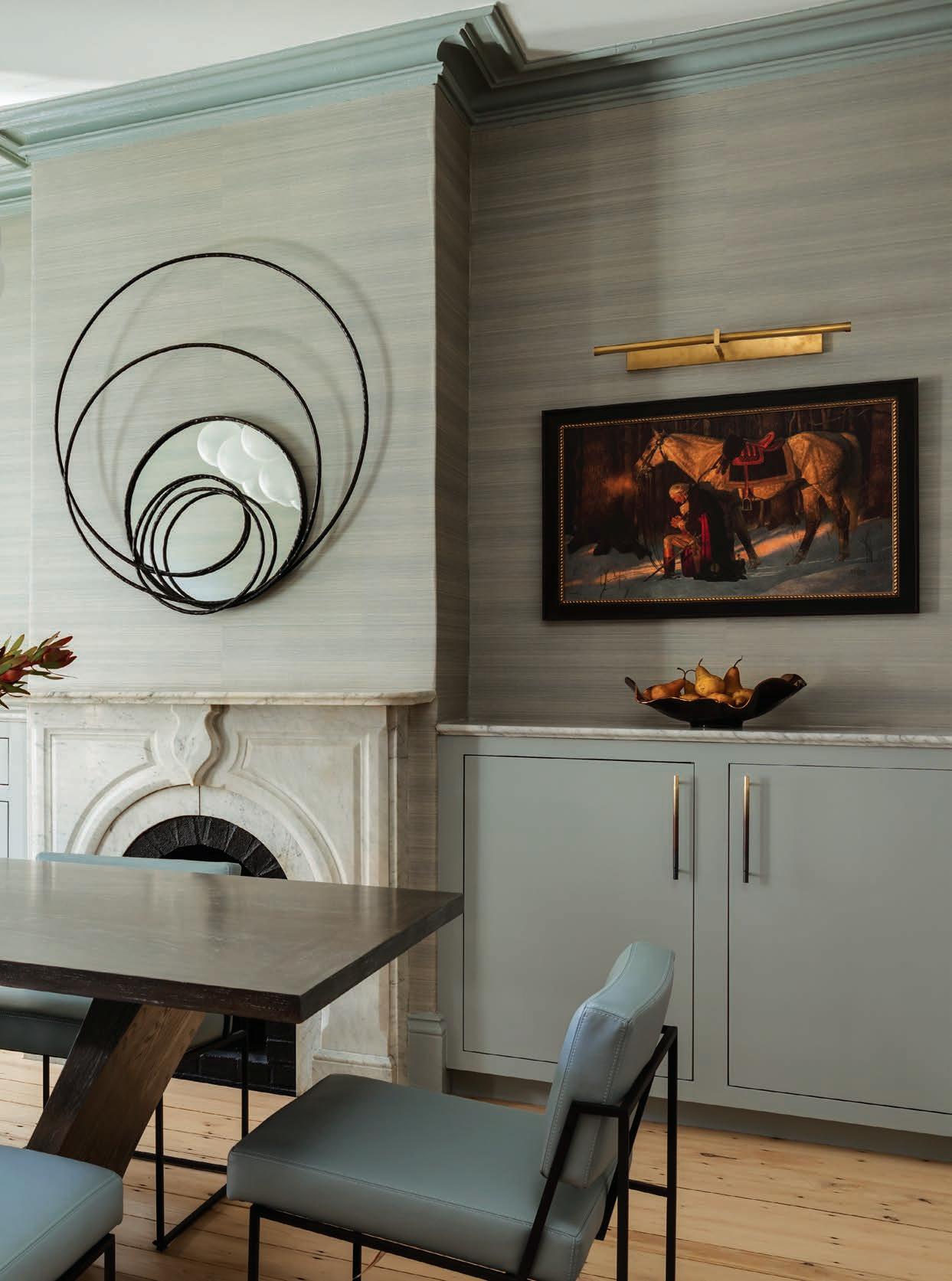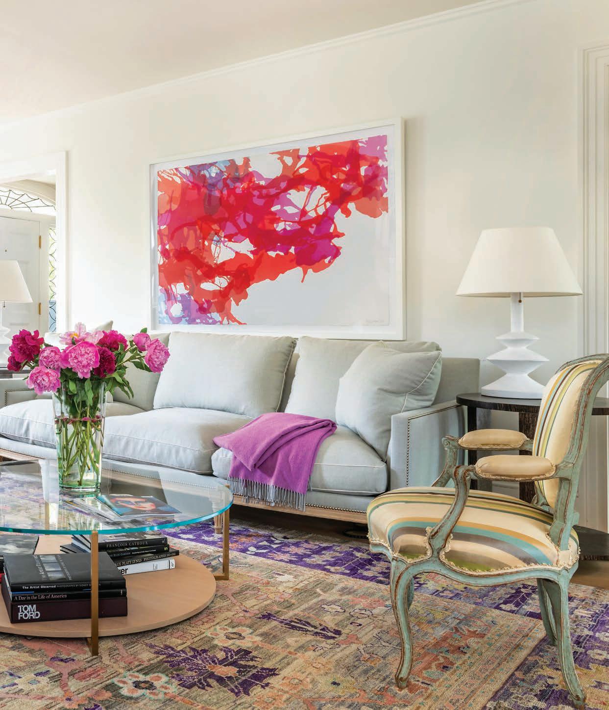 A suburban Boston home designed by Kate Coughlin provides a fitting backdrop. Coughlin mixes custom wallcoverings and rare antiques with the homeowners’ extensive art collection. The well-considered residence happily adapts to additional styling and artistic elements.