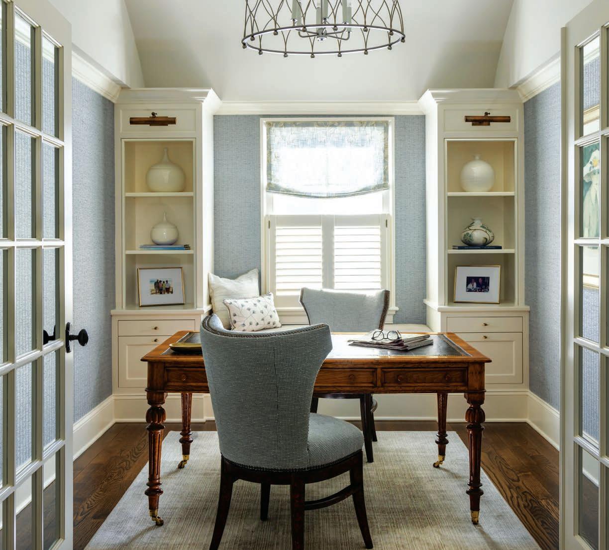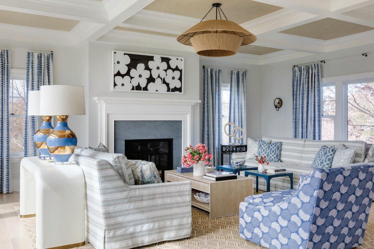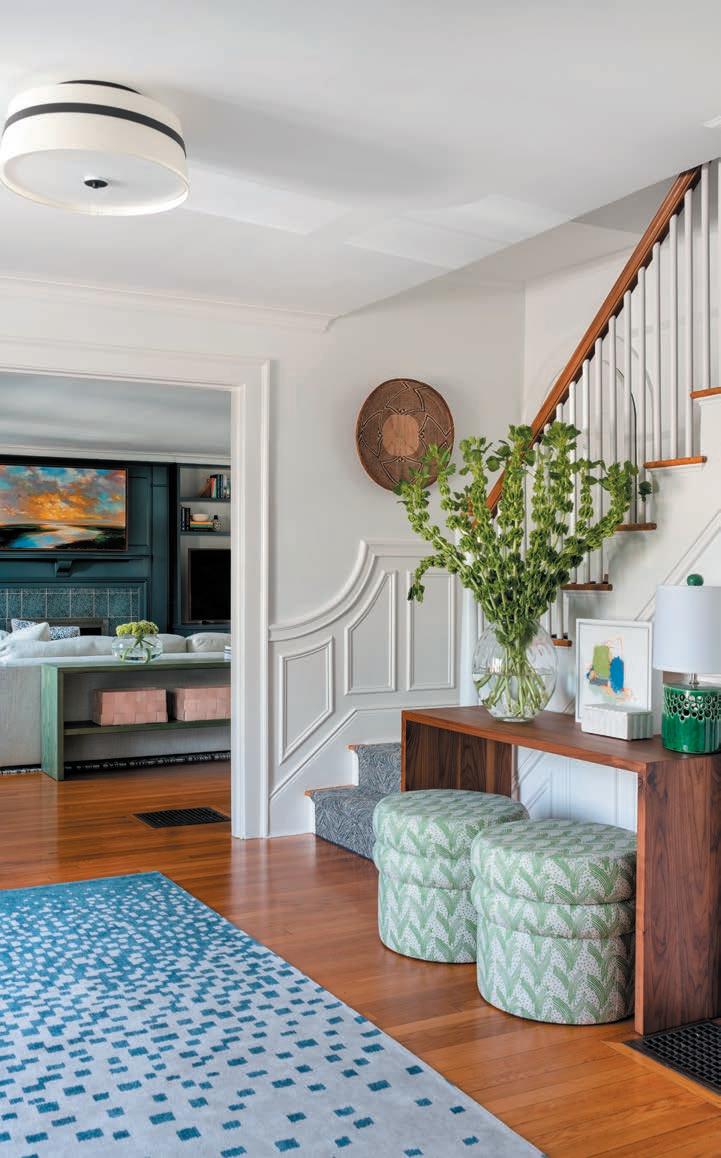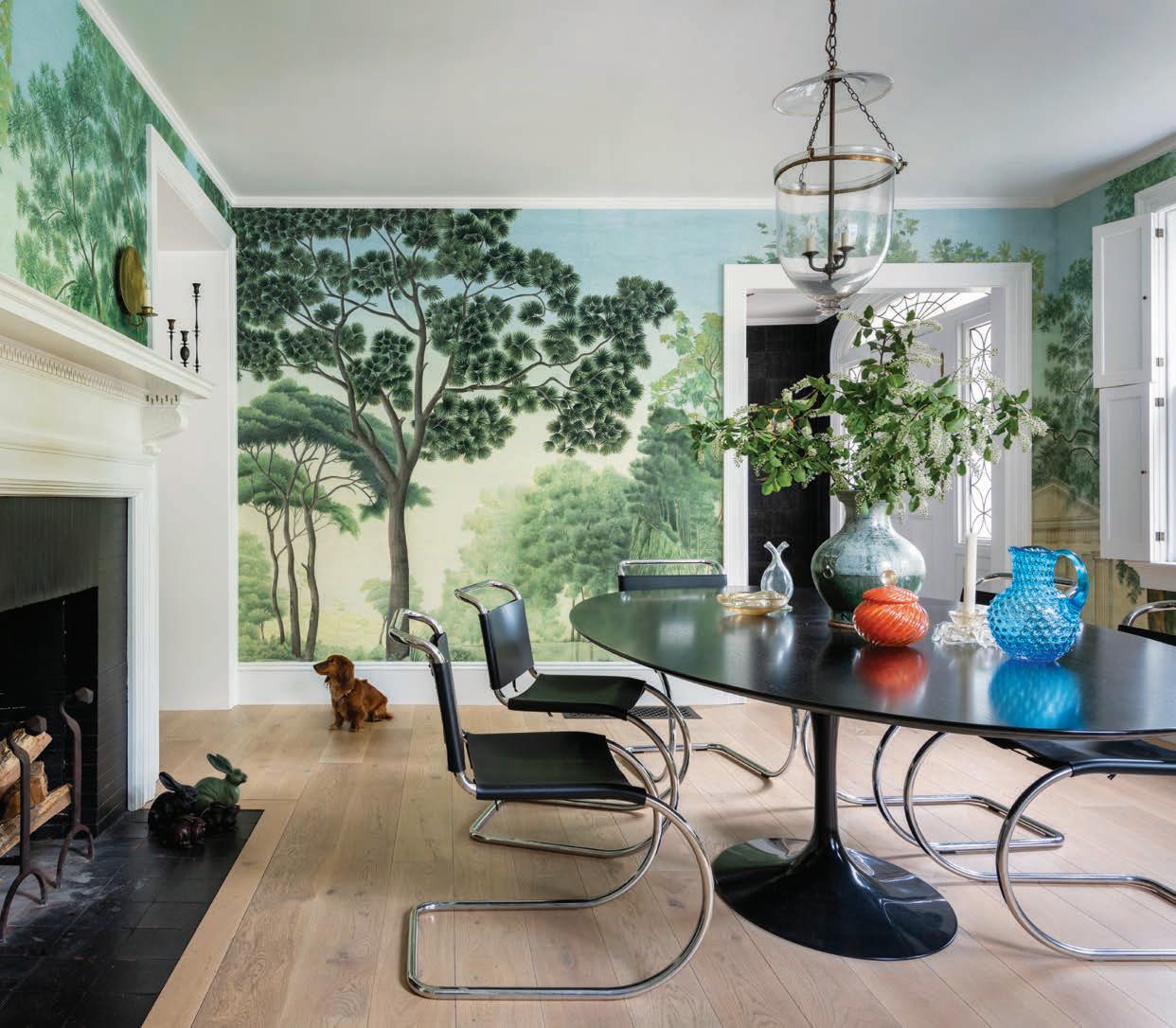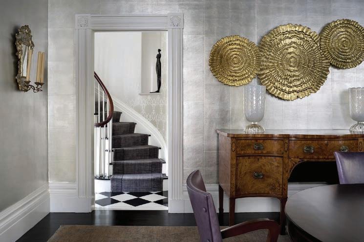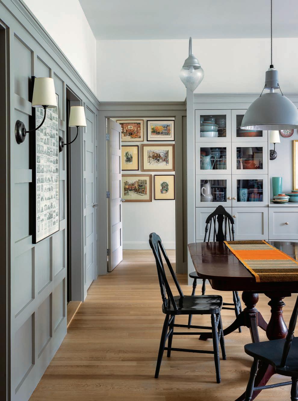 A suburban Boston home designed by Kate Coughlin provides a fitting backdrop. Coughlin mixes custom wallcoverings and rare antiques with the homeowners’ extensive art collection. The well-considered residence happily adapts to additional styling and artistic elements.