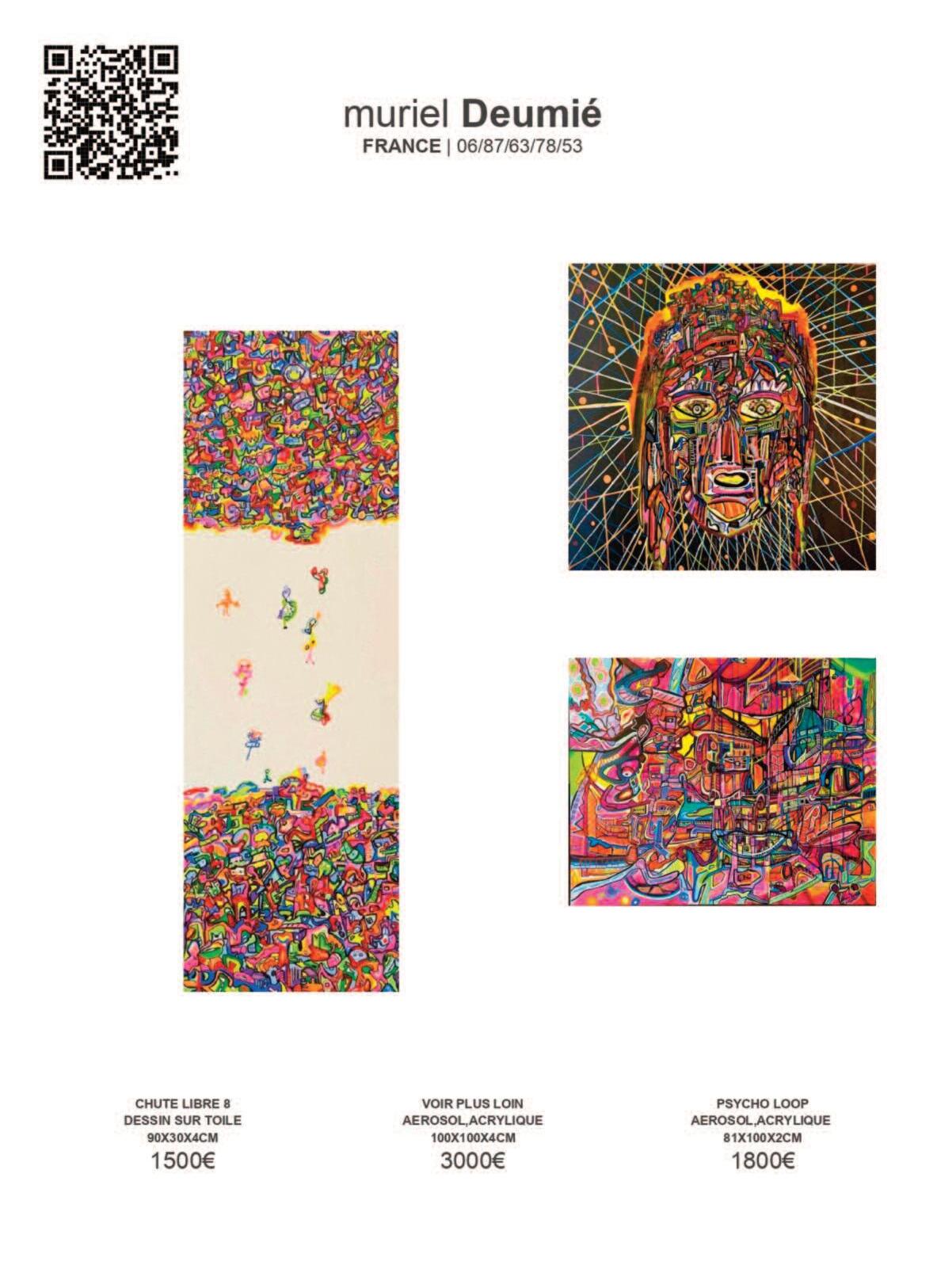 Originaire de Paris et désormais installée au Barcarès, dans le sud de la France, elle insuffle la vie à ses toiles principalement à l’acrylique et au pastel sec