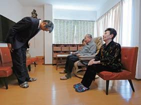 再審無罪判決確定を受け、袴田巌さん(右中央)に謝 罪する静岡地検の山田英夫検事正(左)=11月27日 午前、浜松市内[代表撮影]「時事(JIJI)」