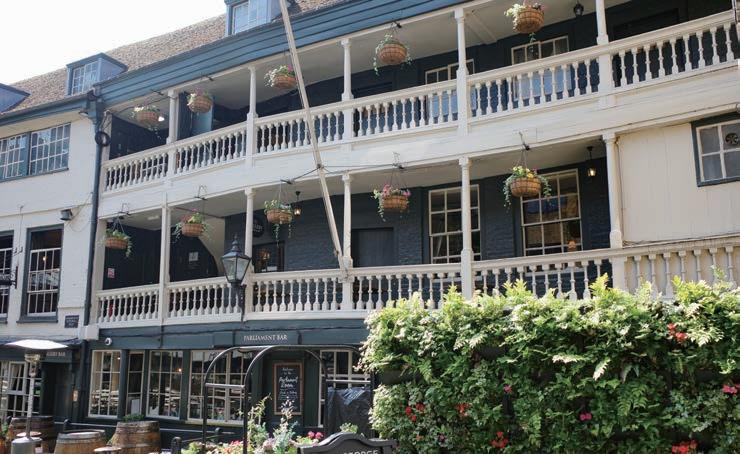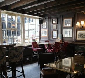 決して広い空間ではないにもかかわらず、店内はいくつかの 小部屋に分かれている。パーラメント・バーは、かつて馬車の 到着を待つ客の待機所として使われていた場所。またミドル・ バーは、以前はコーヒー・ルームと呼ばれており、英作家のチャー ルズ・ディケンズが頻 ひんぱん 繁に訪れていた。ディケンズは、近隣の 刑務所に収監されていた父親と面会するため、幼少時からこの 辺りをよく歩いていたという。債務を支払うことができない者た ちが収監された監獄をテーマとした作品「リトル・ドリット」で もこの店についての記述が見られる。