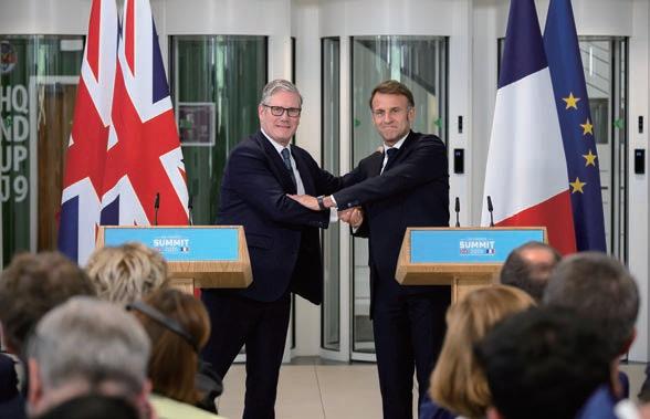 (ロンドン、パリ 7月11日 時事)スターマー首相とフランスのマクロン大統領は10日、 ロンドンで会談し、ロシアの軍事的脅威に対抗するため、核抑止力に関する2国間協力を 強化することで合意した。合同組織「英仏核運営グループ」を設置し、戦略、能力、作戦 の各分野で連携を深めていく。