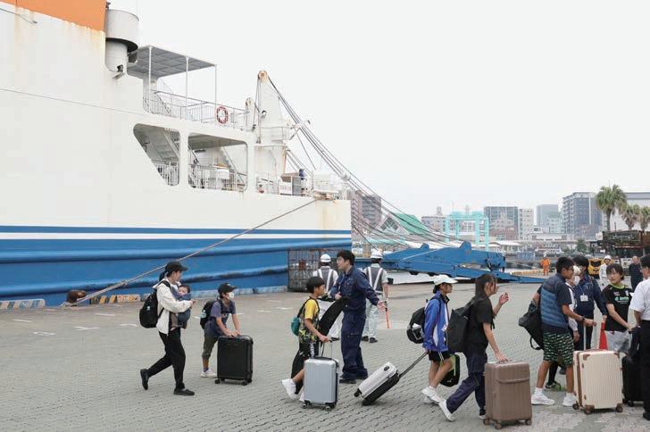 村営船で鹿児島港に到着した悪石島からの避難者ら=4日午後、鹿児島市 「時事通信」(JIJI)