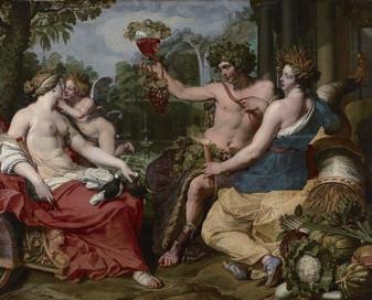 美食、美酒、美女に囲まれたバッカスの姿は チャールズ2世のよう