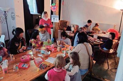 私自身、ライプツィヒに引っ越してきてから、毎週木・ 土曜の夜は「日本の家」でごはんを食べるのが定番で した。そこで日本人やドイツ人をはじめ、さまざまな 背景を持つ人たちと仲良くなり、一緒にビールを飲ん だり、深夜までカラオケを楽しんだり。ドイツで暮ら していて、初めて「地元感」を味わうことができた場所 です。しかし、子どもが生まれてからは夜に外出する ことが難しく、足が遠のいてしまっていました。 そんな私たちのような子連れ家庭が楽しみにしてい るのが、月に1回のペースで開催されているファミリー イベントです。この日は昼間から日本の家が開いてい て、子ども向けの工作やワークショップなどのプログ ラムを用意してくれています。イベント内容は、節分 やお花見、夏祭りなど、日本の四季に合わせたものが 中心。日本にルーツを持つファミリーも多く集まるの
