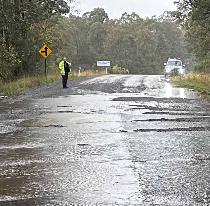 The Bucketts Way, bumpy at the best of times, suffered considerable surface damage, according to reports from Stroud SES volunteers.