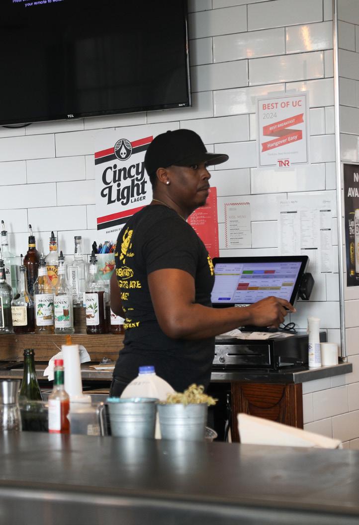 An employee rings in a customers order at Hang Over Easy on Feb. 16, 2024.
