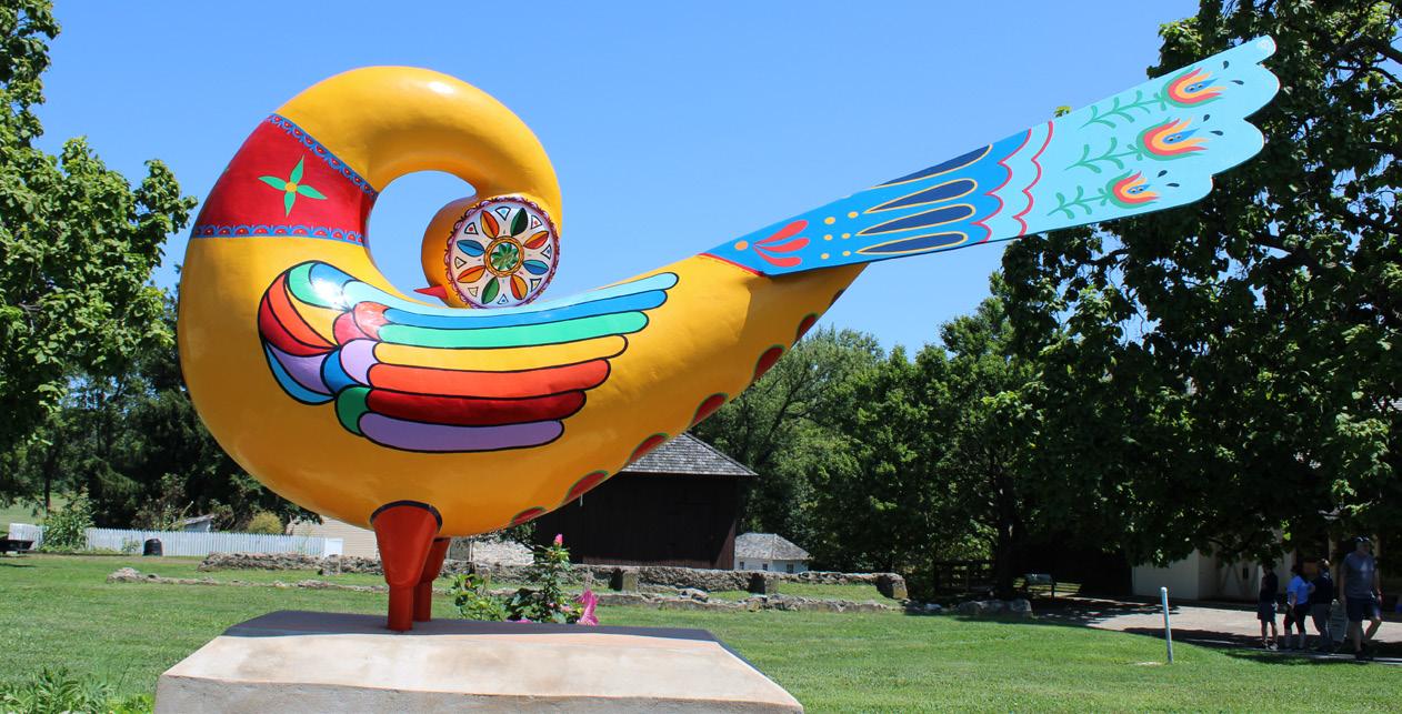 El residente más extravagante del Centro del Patrimonio del Condado de Berks-la imponente y brillante estatua de Distelfink-recibió recientemente un nuevo toque de color gracias al experto en obras de arte y pintor holandés de Pensilvania, Eric Claypoole. Maestro del arte tradicional de los diseños hexagonales y las estrellas de granero, Claypoole ha devuelto a esta querida ave su vibrante esplendor, asegurando que siga dando la bienvenida a los visitantes como símbolo de buena suerte y felicidad durante muchos años.