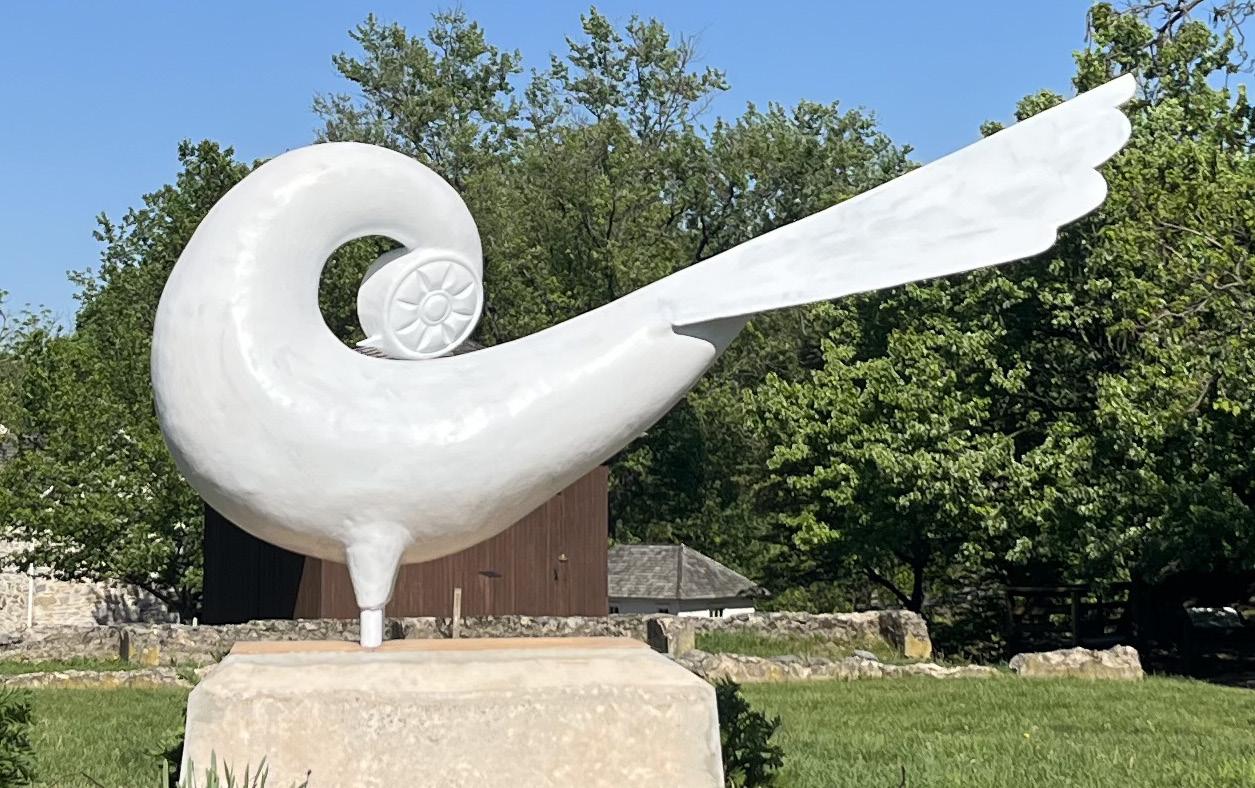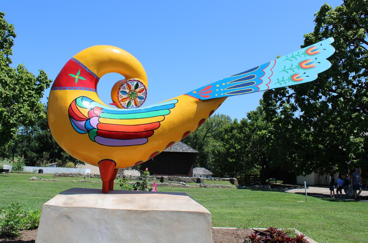 El Distelfink, un jilguero estilizado asociado desde hace mucho tiempo con la cultura holandesa de Pensilvania fue creado por primera vez en 1984 por el escultor Ramón Lago y pintado por miembros de la Asociación de Artesanos de Berks. Entre esos artesanos originales se encontraba el padre de Eric, John P. “Johnny” Claypoole, que formaba parte de la asociación y ayudó a dar vida a la emblemática ave. El Distelfink se convirtió rápidamente en una pieza fija del Centro del Patrimonio, pero el paso del tiempo y los cambios climáticos fueron apagando gradualmente sus colores.